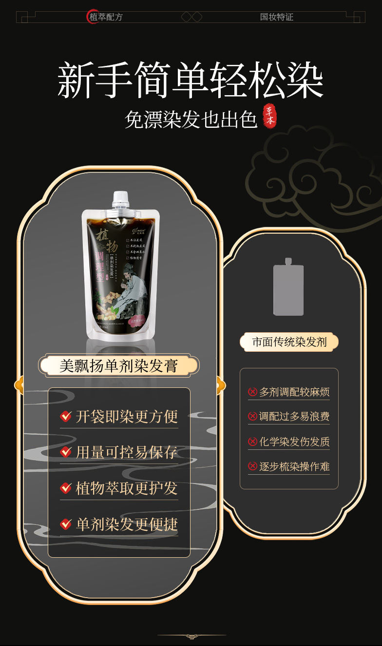 美飘思草本手工熬制单剂护染膏无氨植物原料养发盖白发染发剂