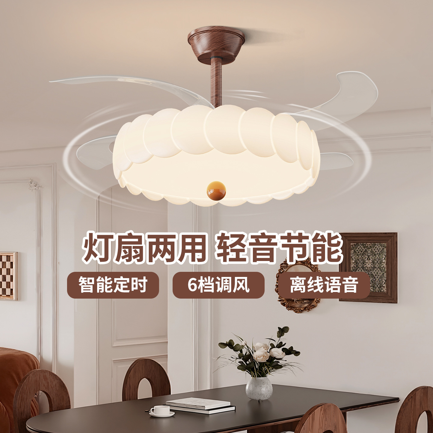 法式中古风餐厅风扇灯2025年新款六档变频静音隐形餐厅吊扇灯412L