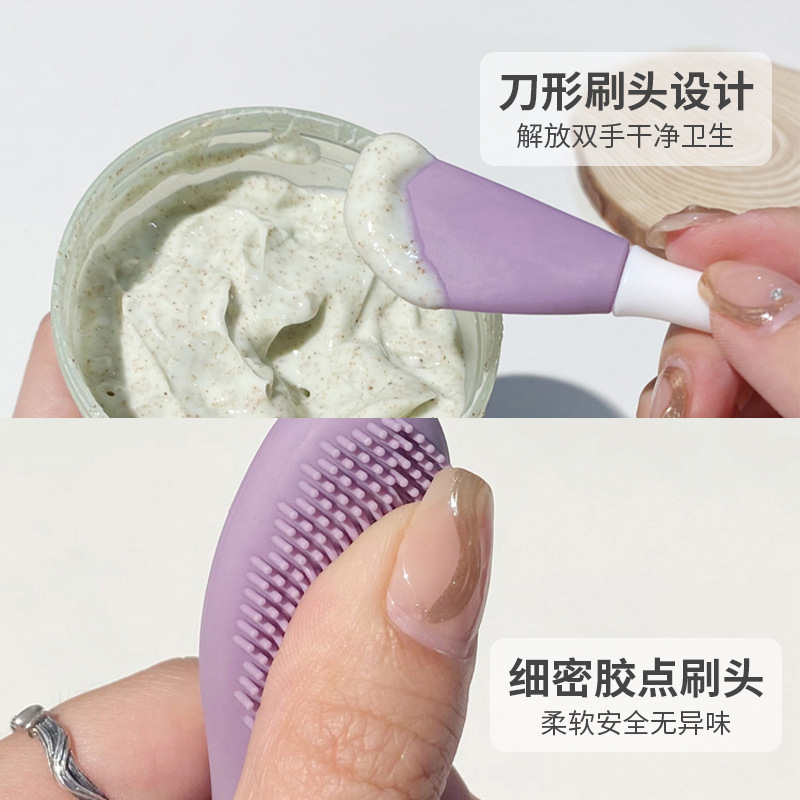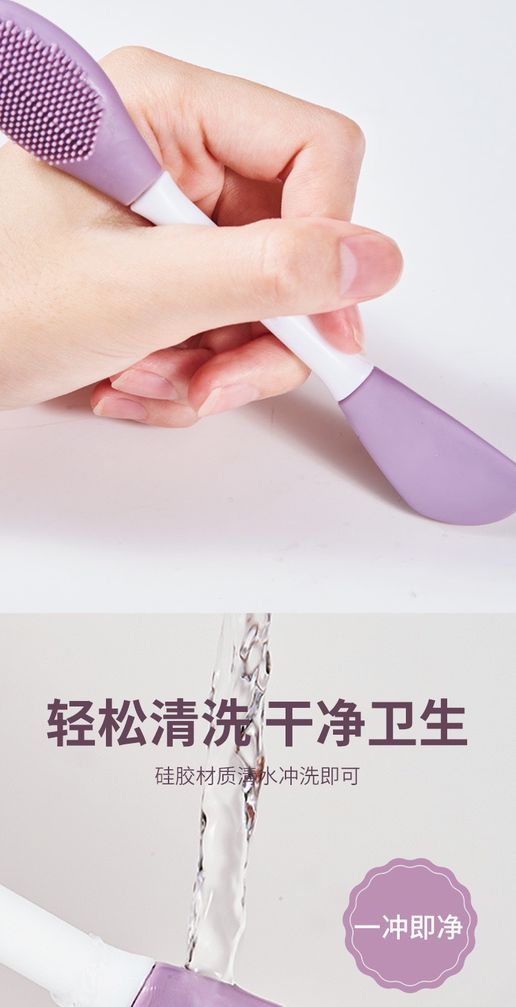 双头两用面膜刷硅胶面膜棒铲型胶头+洗脸刷清洁脸部硅胶涂抹泥膜