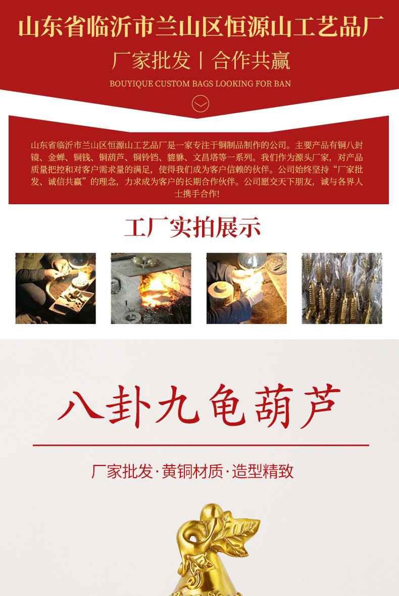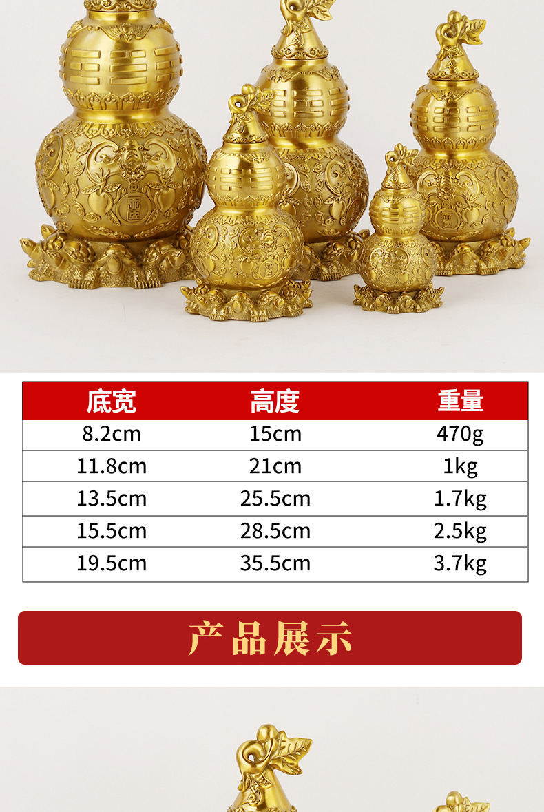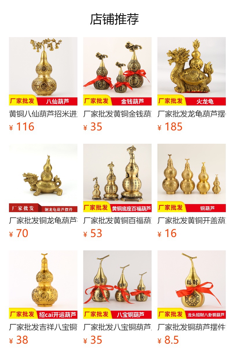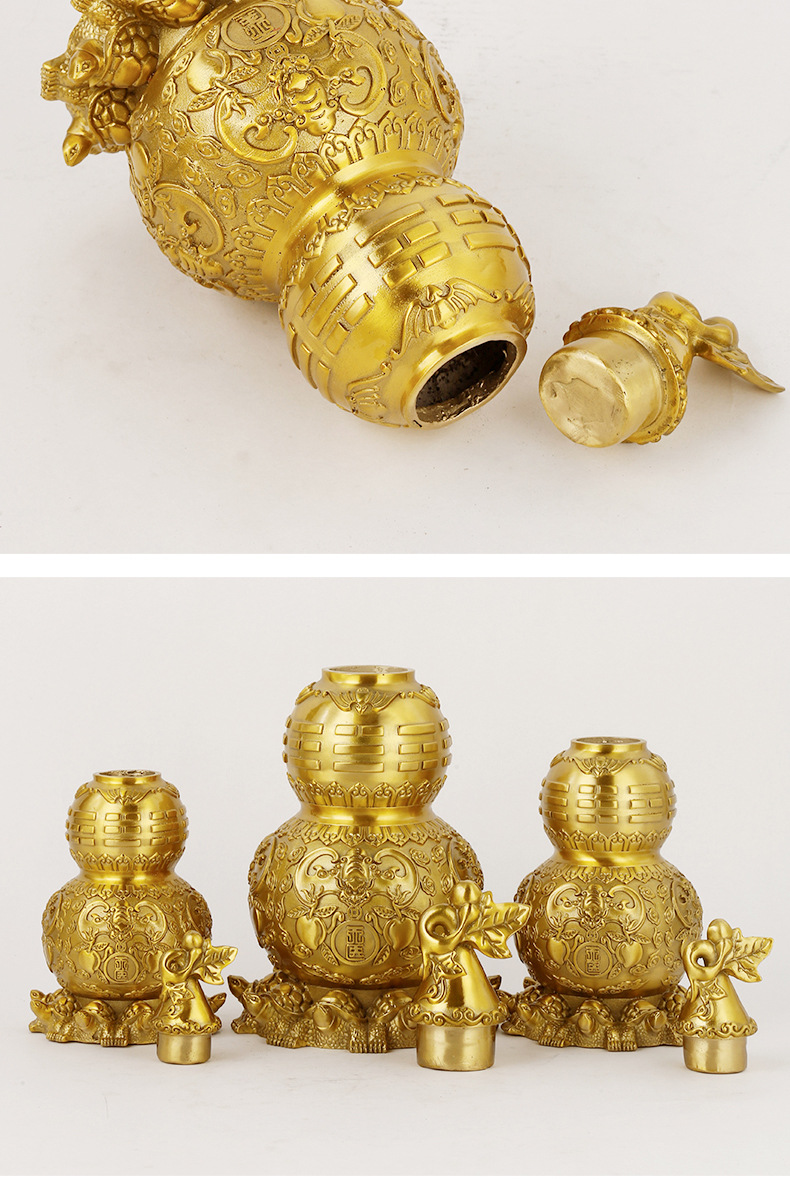 メーカー卸売吉祥八宝銅瓢箪銅八卦瓢箪置物大小サイズ開蓋招米開運銅瓢箪