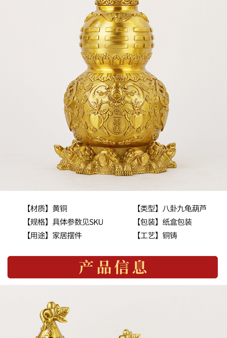 黄厂家批发黄铜天医八卦九龟铜葫芦家居办公室桌面装饰礼品摆件