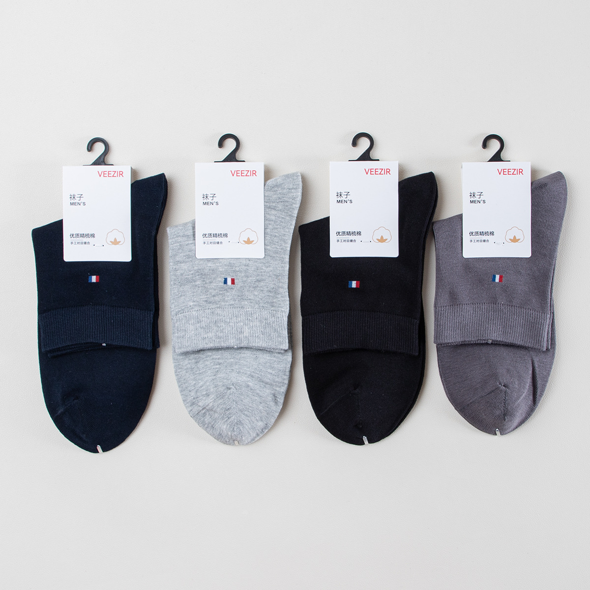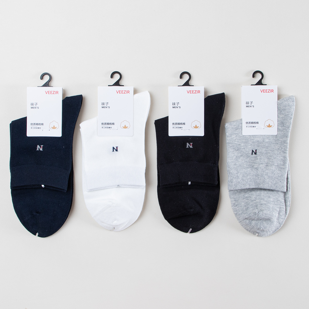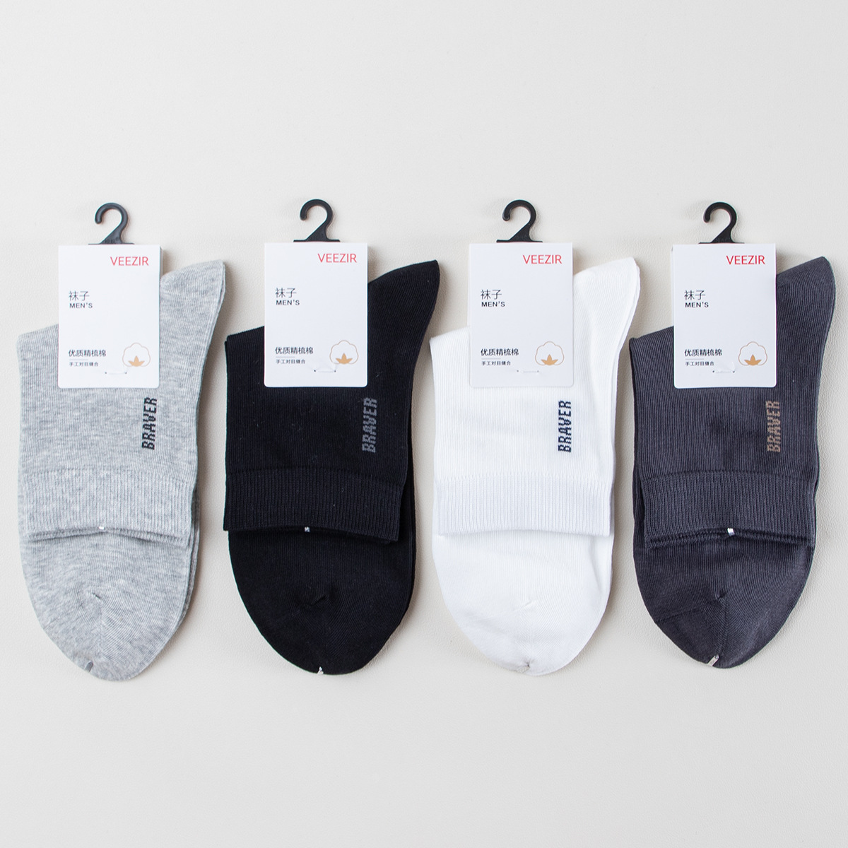 靴下男性秋冬中筒靴下綿靴下双針純色ビジネス靴下カジュアル男性吸汗通気性男性靴下卸売り