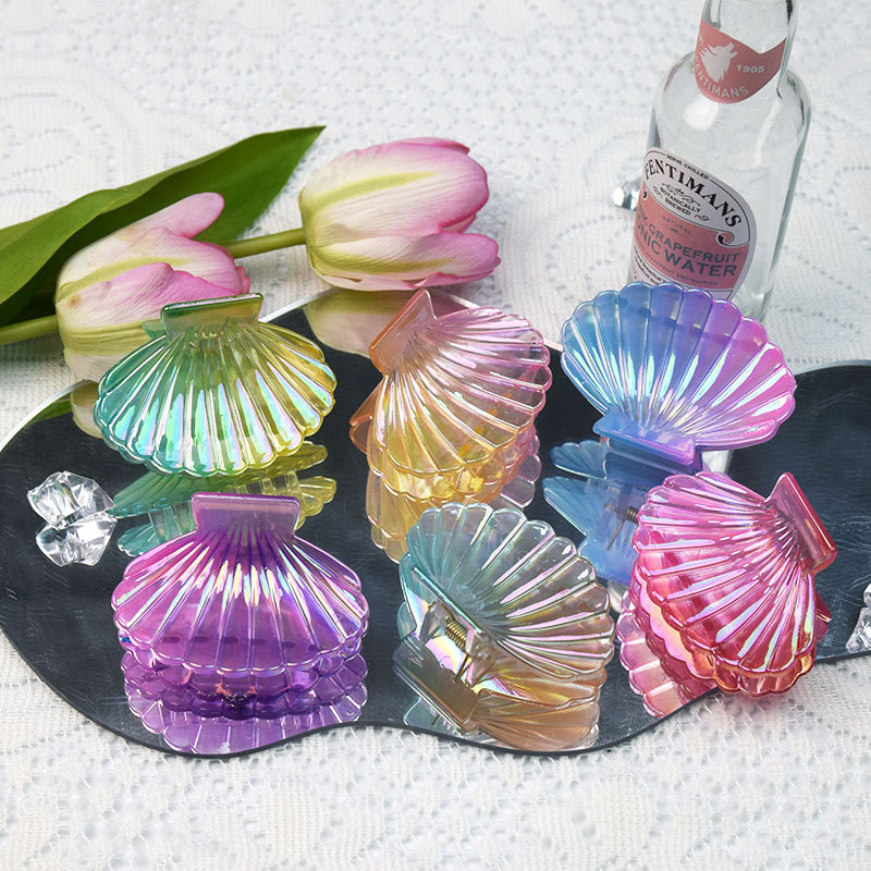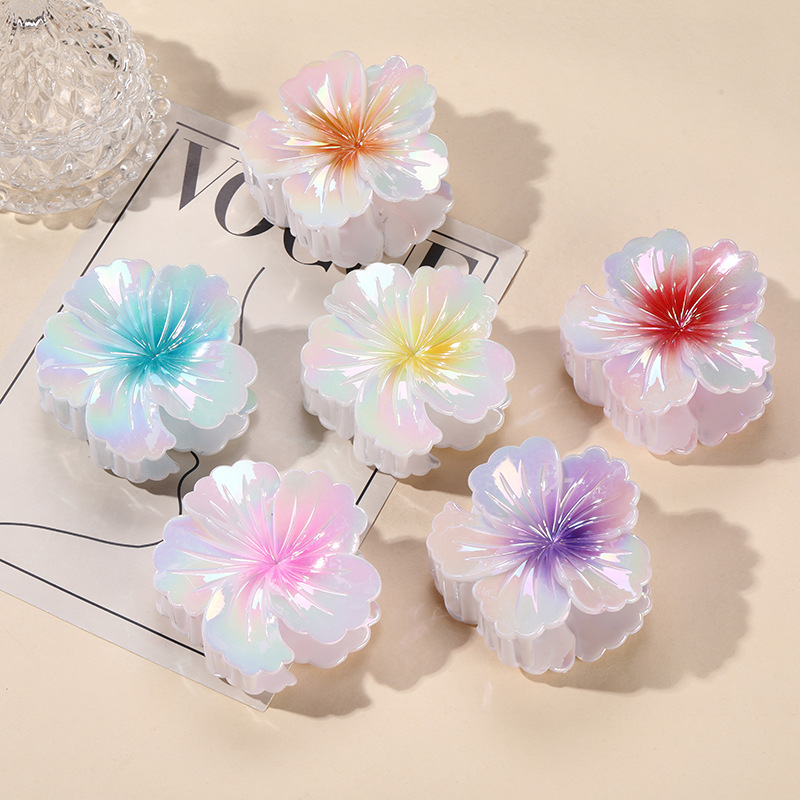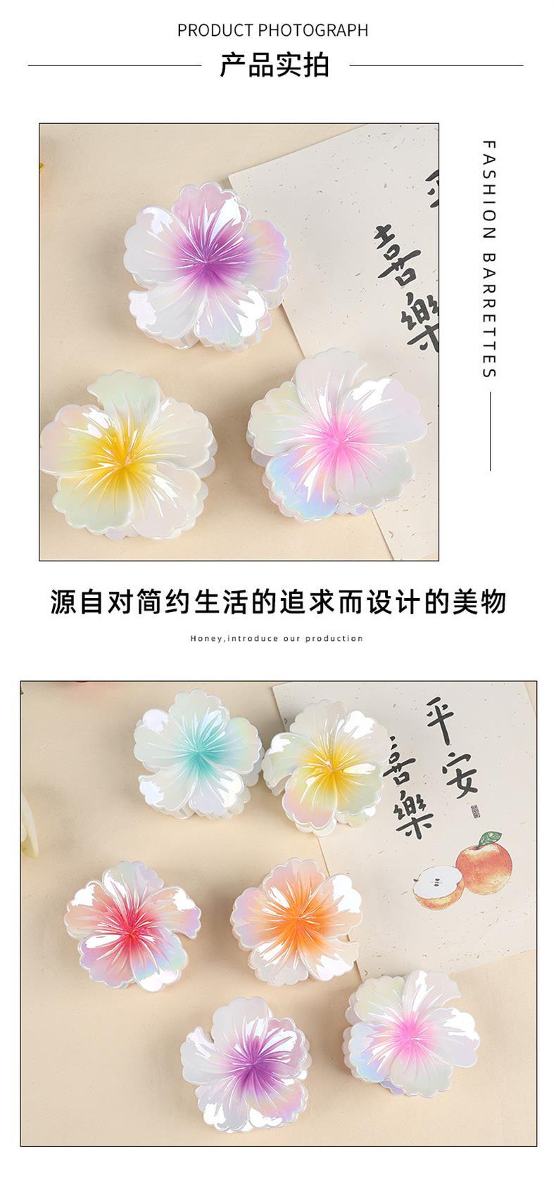 跨境新款卷心花抓夹珠光渐变色花朵鲨鱼夹清新甜美高马尾发夹批发