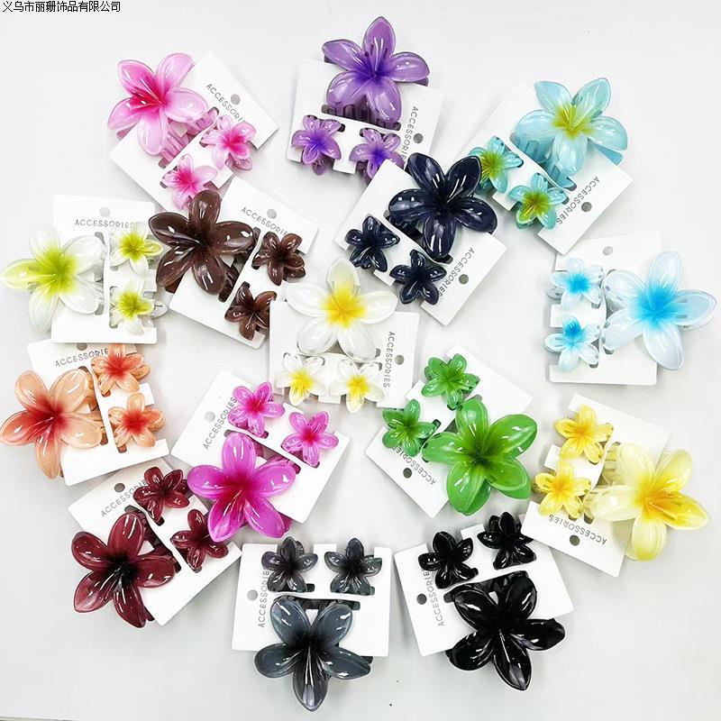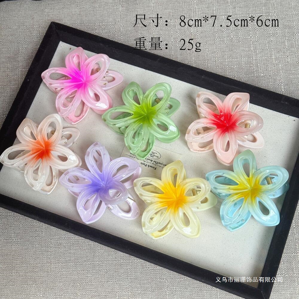 欧美跨境头饰彩色渐变鸡蛋花朵发夹四叶草盘发鲨鱼夹甜美女发饰品