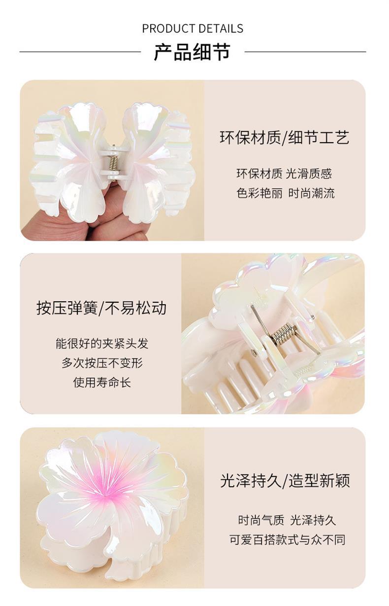 跨境新款卷心花抓夹珠光渐变色花朵鲨鱼夹发抓气质盘发夹子