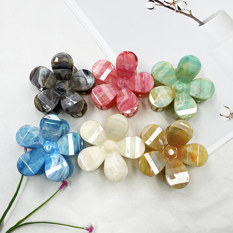 2026跨境爆款炫彩流纹抓夹立体花朵超仙五瓣花发夹高级感抓夹发卡