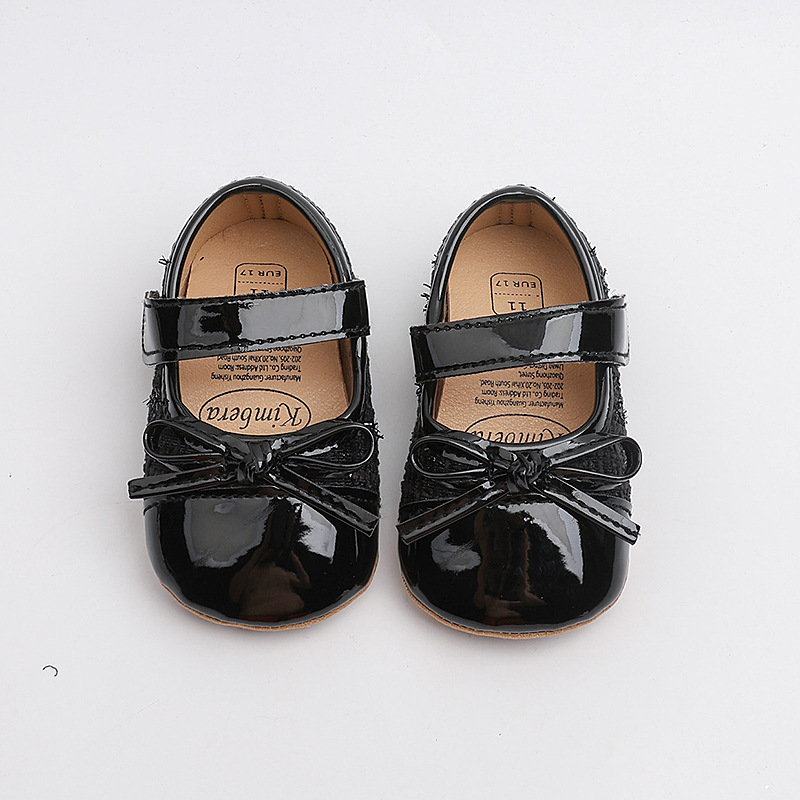春秋新生婴儿0-1岁女宝宝百天周岁可爱蝴蝶结软底不掉跟学步鞋