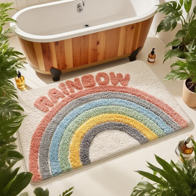 浴室地垫ins风彩虹吸水防滑脚垫家用卫生间门口易打理仿羊绒地垫