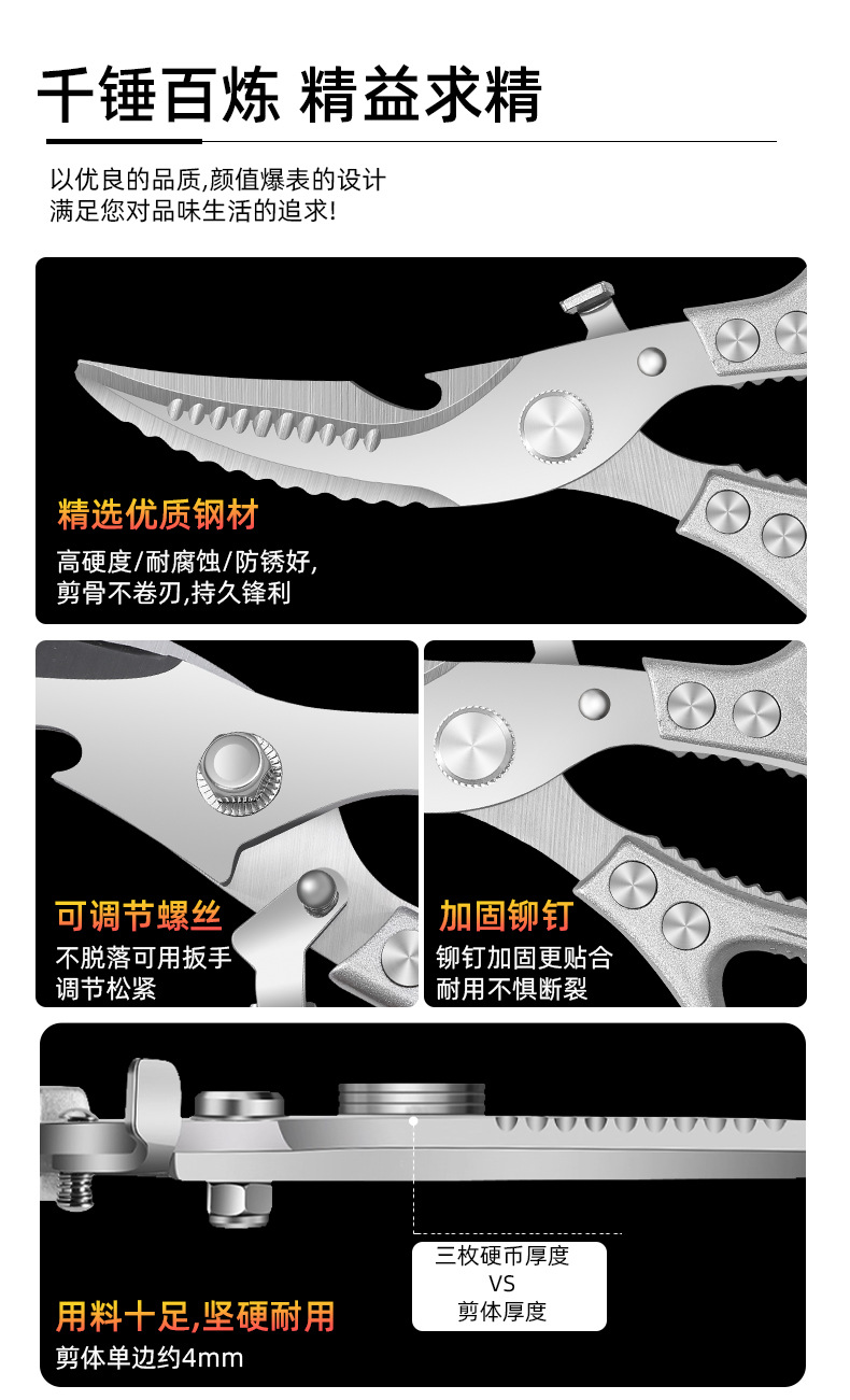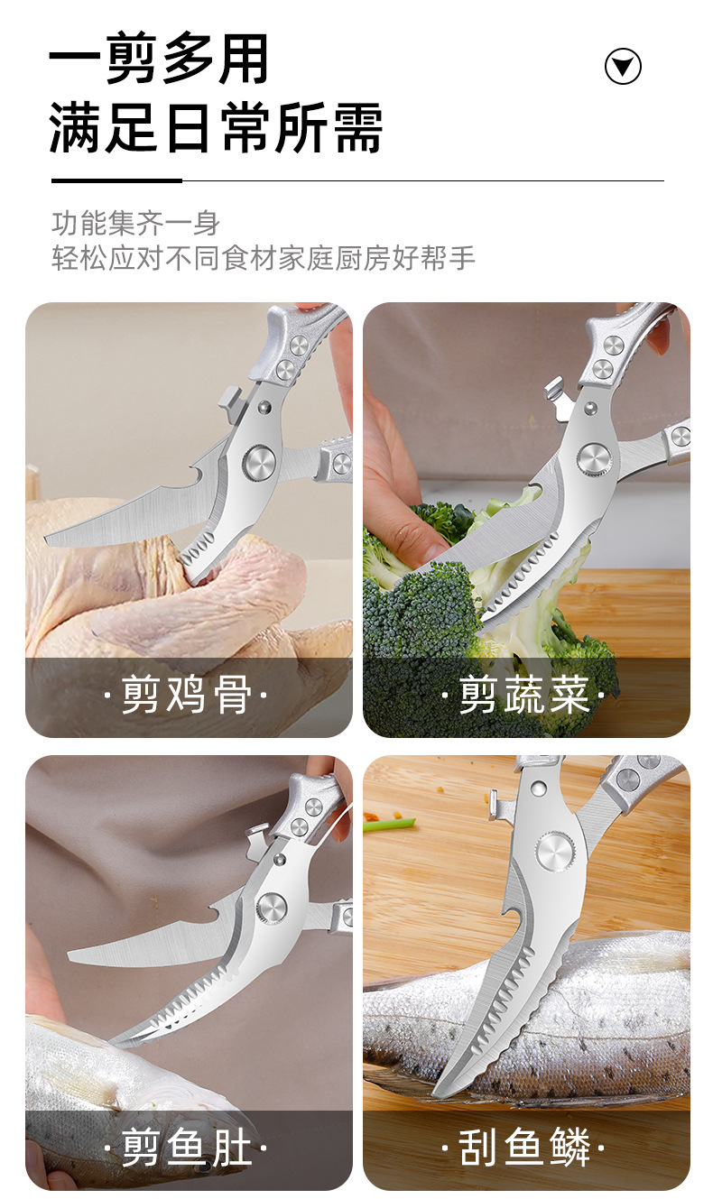 剪刀厨房剪骨头用不锈钢强力鸡骨剪食物杀鱼大多功能剪升级