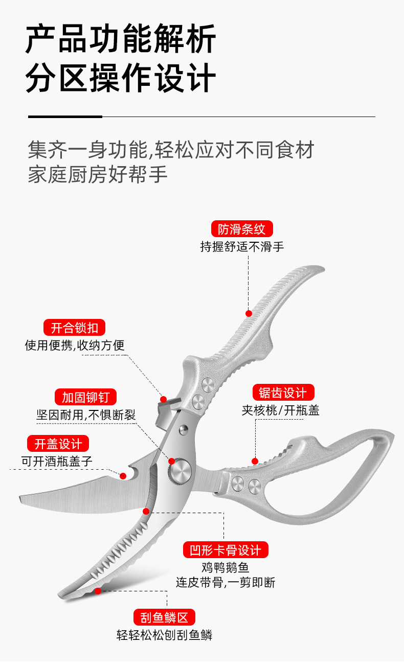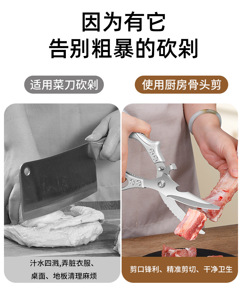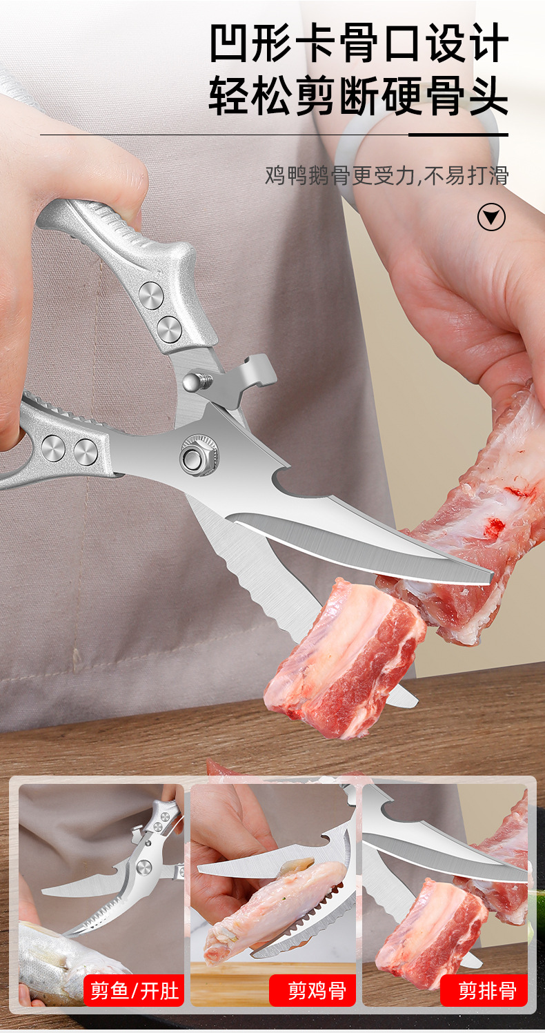 亚马逊热销厨房剪刀强力鸡骨剪特大号鸡鸭鹅骨头专用多功能食物剪