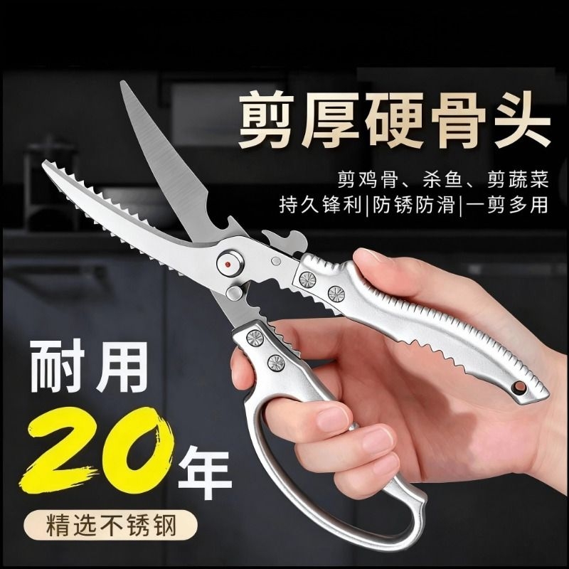不锈钢剪刀家用鸭鸡鹅骨头杀鱼剪肉鸡骨剪露营烤肉剪厨房剪刀