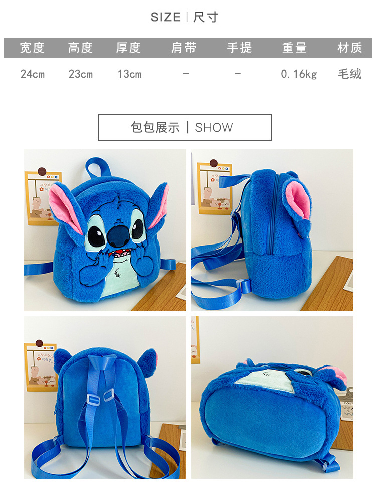 新款日系ins毛绒玩偶史迪仔时尚可爱双肩包大容量幼儿园小童背包