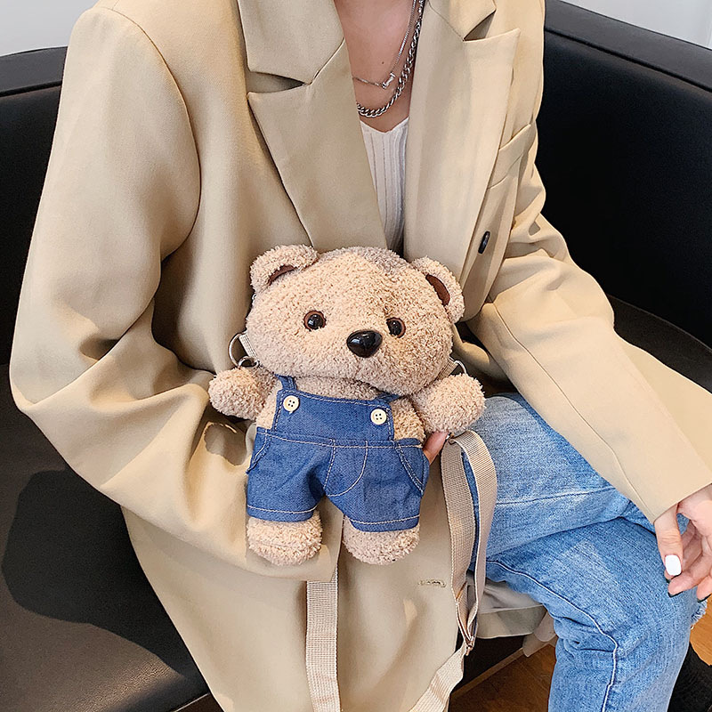 国境を越えた新しいアニメの熊の包みの女性のぬいぐるみのかわいいストラップの熊の人形の肩は斜めに小銭の財布にまたがります。