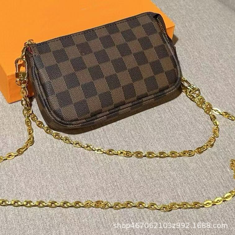 海外取寄せ品 ミニブラウンチェック柄麻雀バッグ チェーンポータブル かわいい 小型ゴミバッグ クロスボディ ジッパー ビッグブランド クラッチバッグ