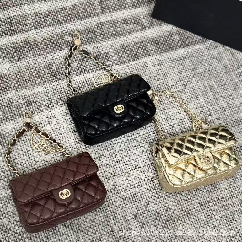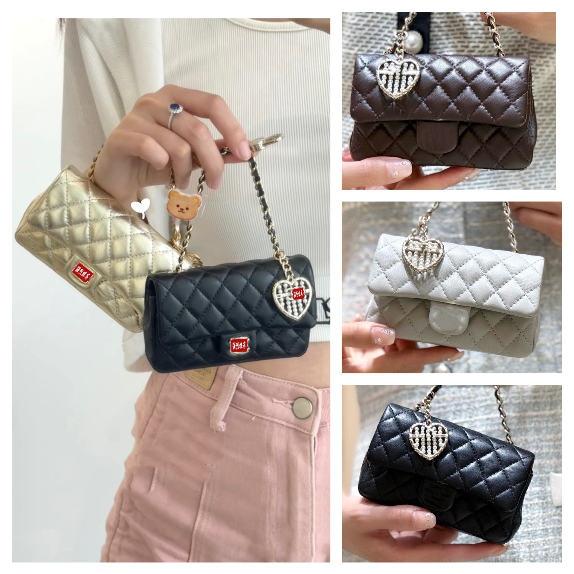 新款小香mini挂件包小废包珍珠爱心吊坠菱格链条包口红包零钱包