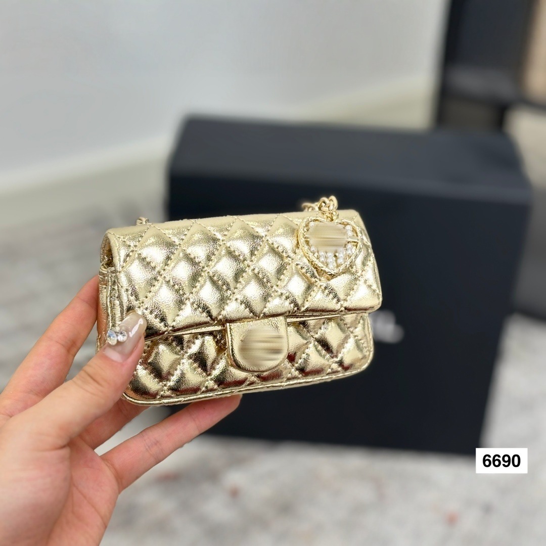 25A cf爱心链条挂件羊皮方胖子珍珠链条菱格口盖包斜挎手机包轻奢