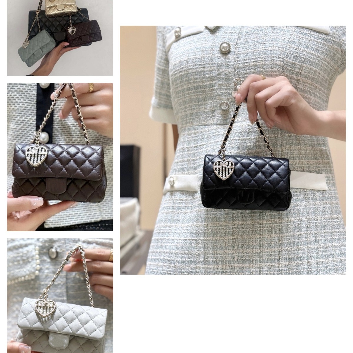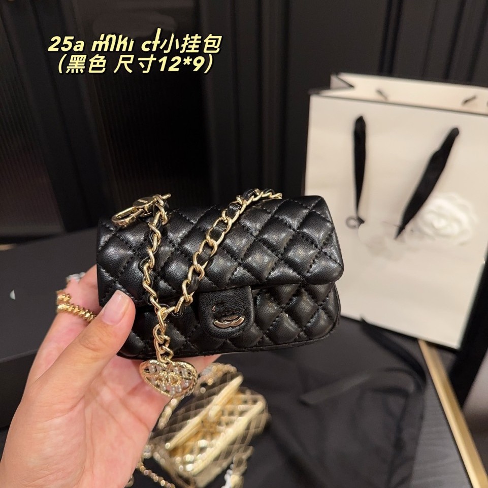 2025新款C家25A真皮超mini CF挂包挂件小包爱心珍珠挂