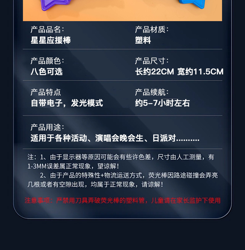 演唱会荧光棒手持荧光棒酒吧星星荧光棒舞台助威道具发光玩具批发
