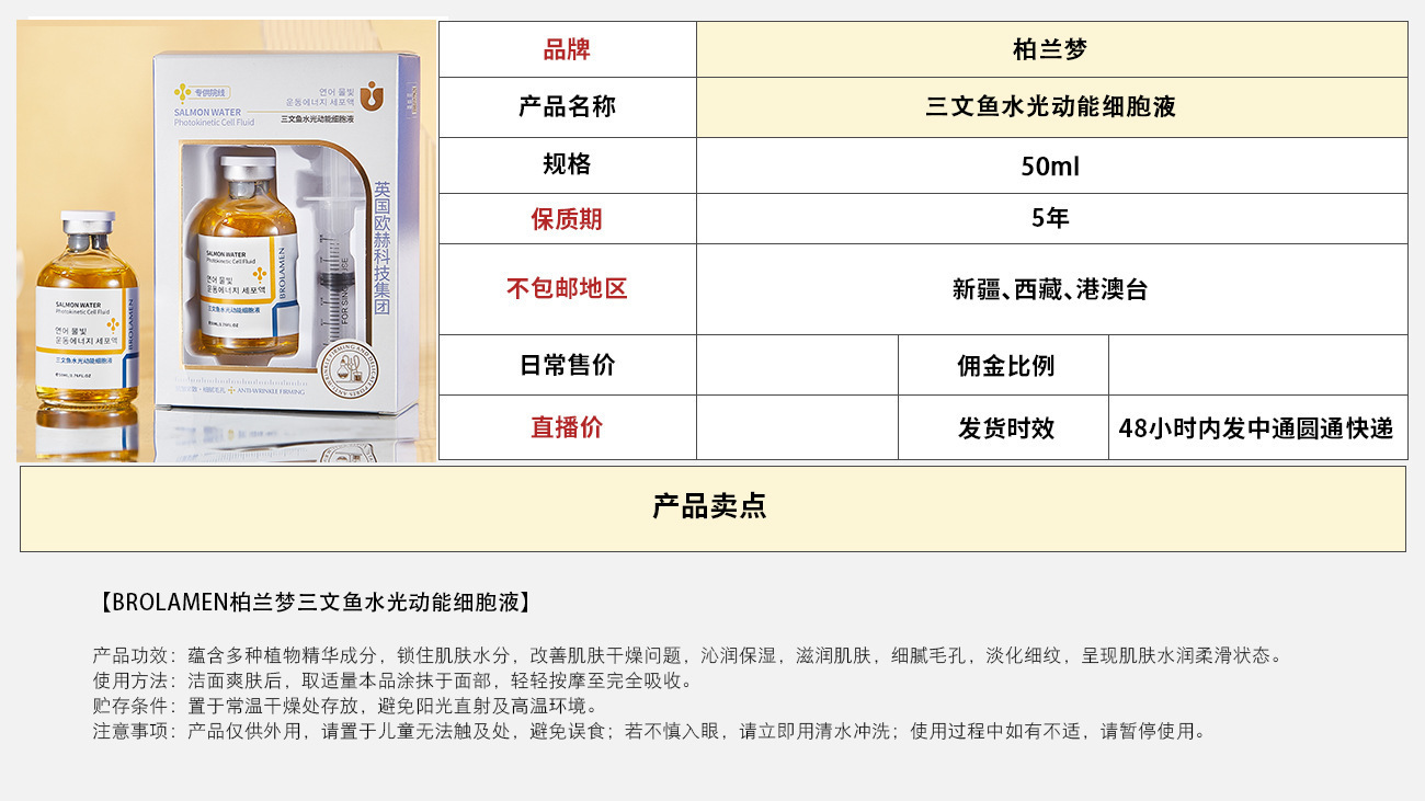 柏兰梦黄金扎三文鱼水光动能细胞液精华液保湿乳液面部补水护肤品