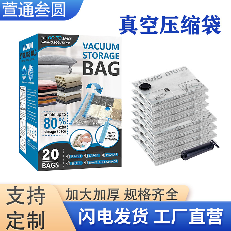 20 ピースクロスボーダー真空バッグ圧縮バッグ衣類収納アマゾン人形枕真空収納袋ハンドポンプ付き