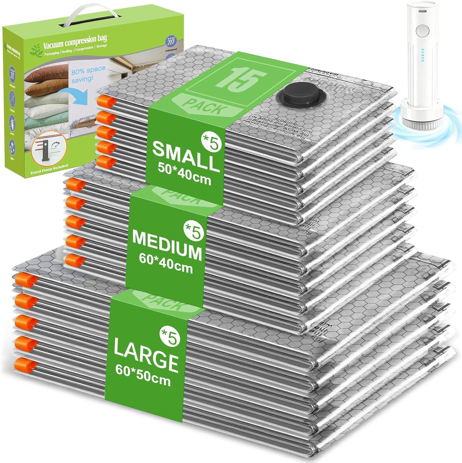 セットの真空圧縮袋は、アマゾン基準のバルブ付き真空袋セットで、密封されています。