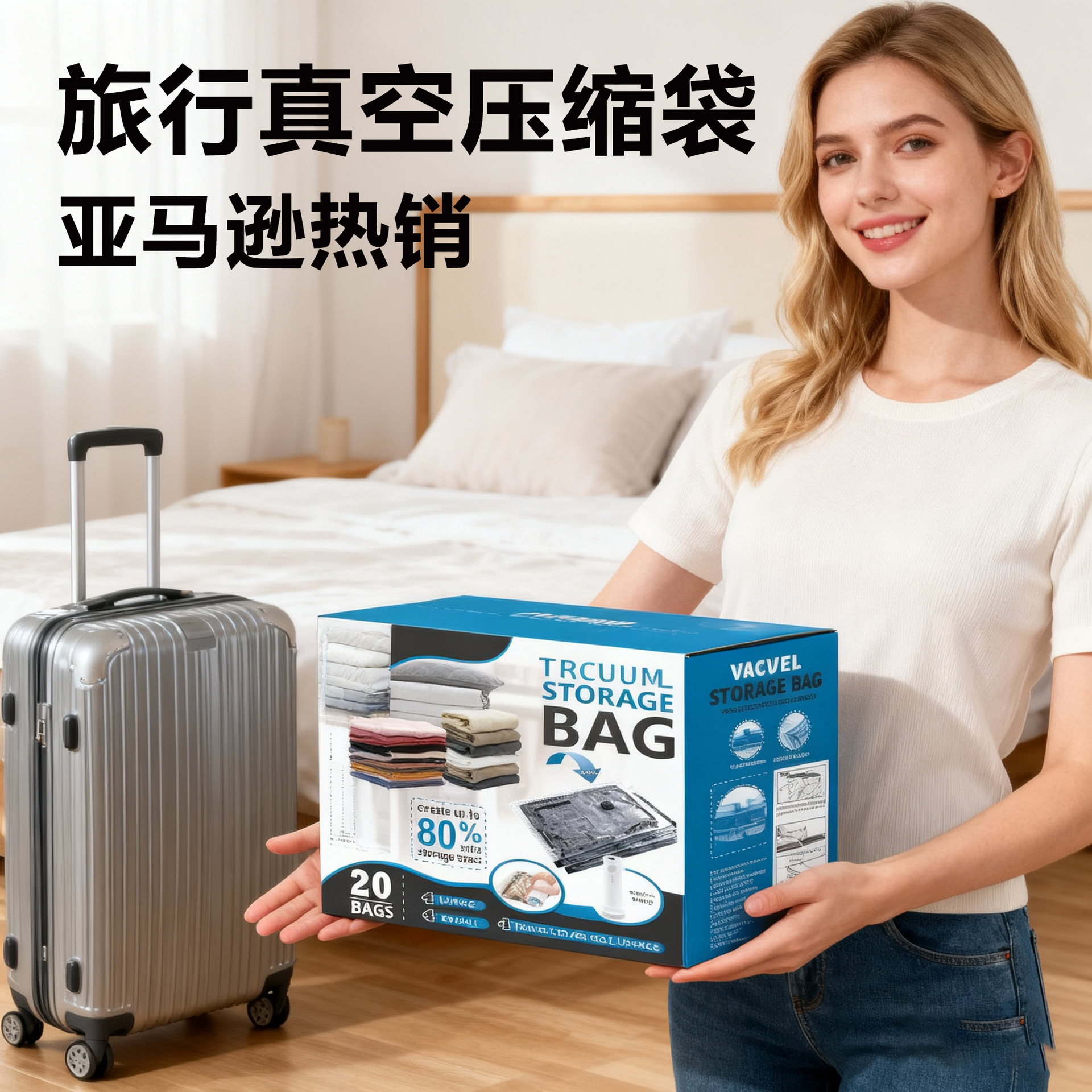 跨境旅行亚马逊真空压缩袋收纳袋旅行套装真空被子衣物衣服专用袋