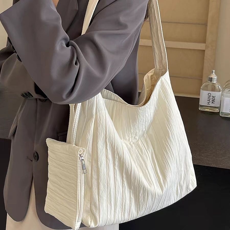 脇の下大容量バッグ 2025 新しいシンプルな文学少女ショルダーキャンバスバッグクラウド通勤トート