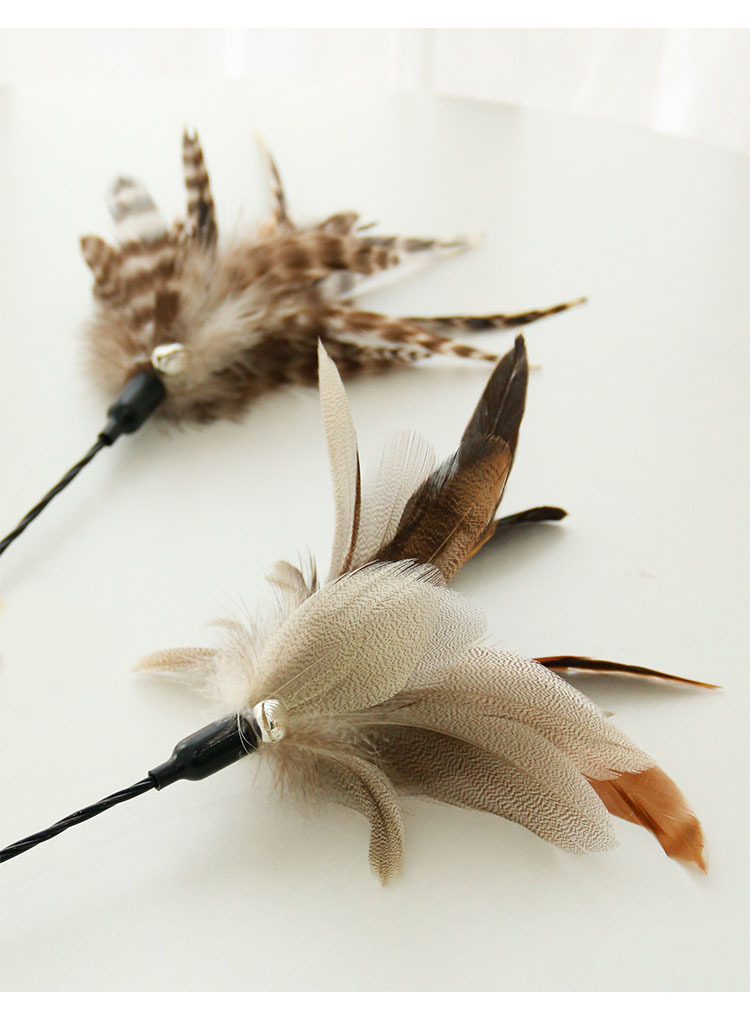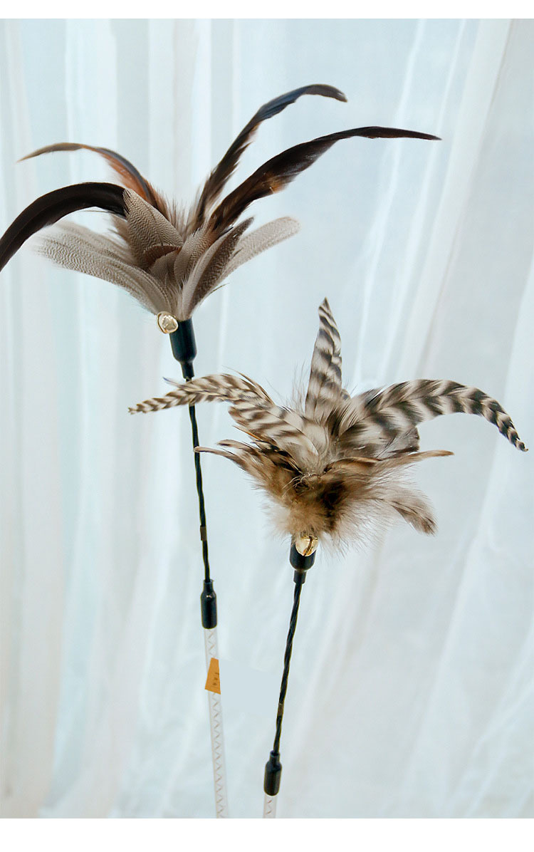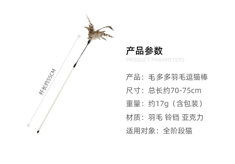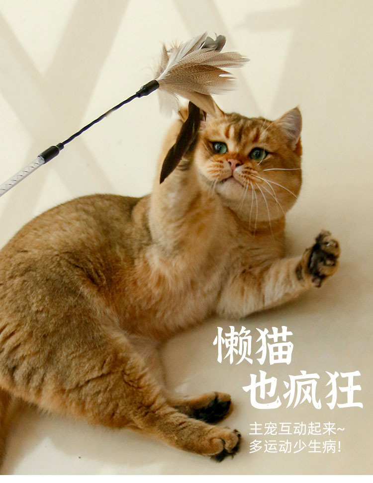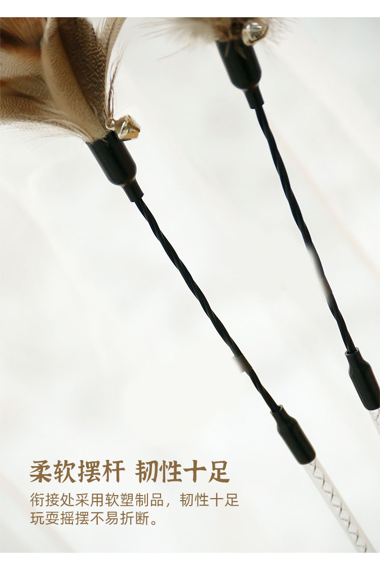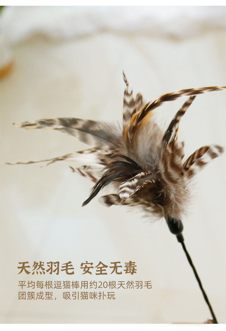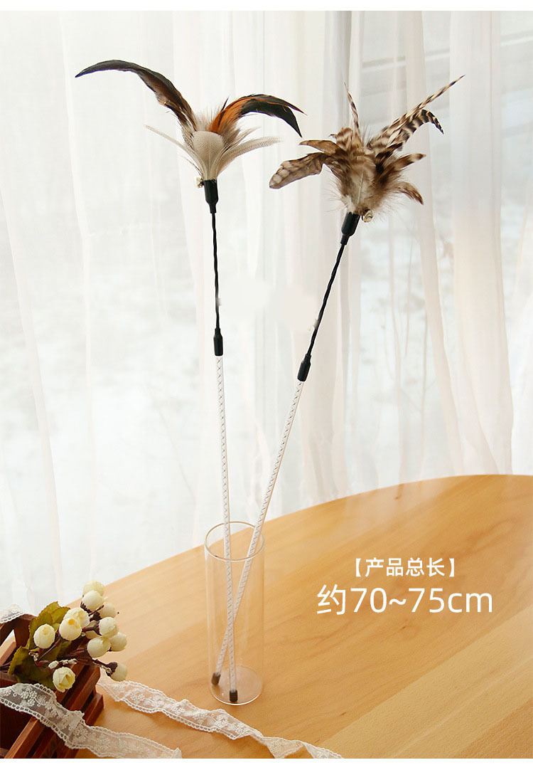 逗猫棒新品加长版羽毛铃铛互动逗猫杆原色毛耐咬耐抓工厂直批