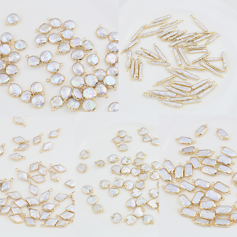 天然バロック異形真珠ペンダントシングルペンダント愛心長条平円形手作りdiy縁取り部品