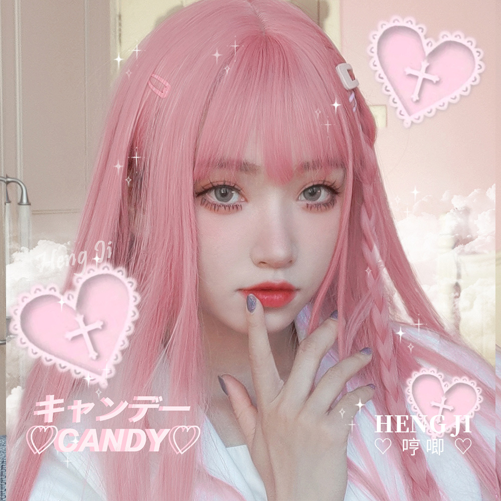 クロスボーダー卸売ピンクかつら女性ロングストレートネット赤い日常jk少女リアルなカラー丸顔lo偽毛カバー