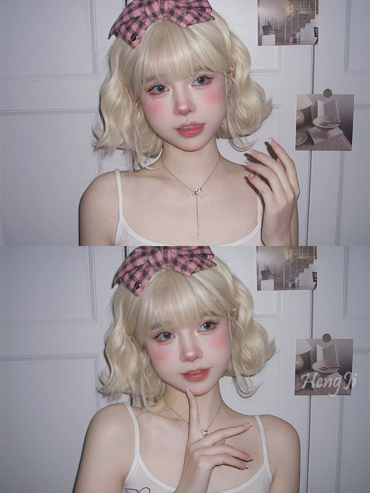 クロスボーダーのかつらの女性の長髪lolita韓国式の髪形の短い巻き髪のショートヘアのネットの赤いファッションの全頭カバーのかつらのカバー