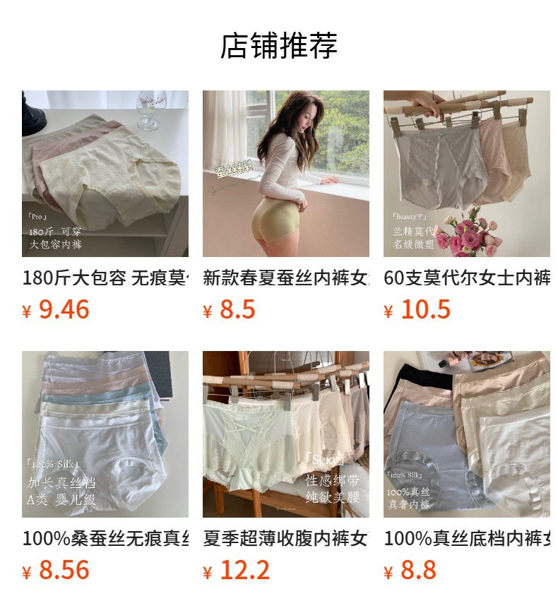 春夏新作シルク下着女性用超薄底股間がお尻を締め付けない大きいサイズミッドウエストシームレススポーツ三角パンツモダール