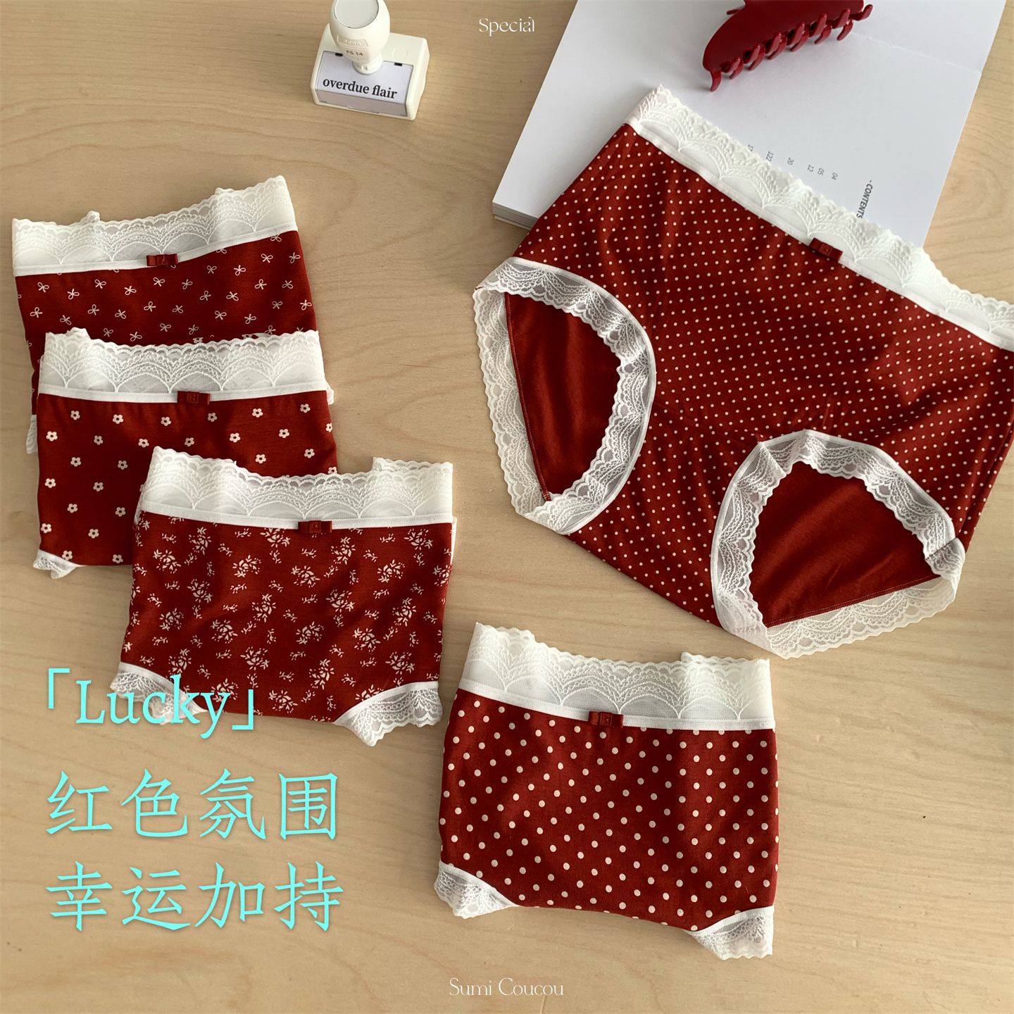 红色内裤女生纯棉全棉中腰透气少女大码本命年舒适三角短裤头蕾丝