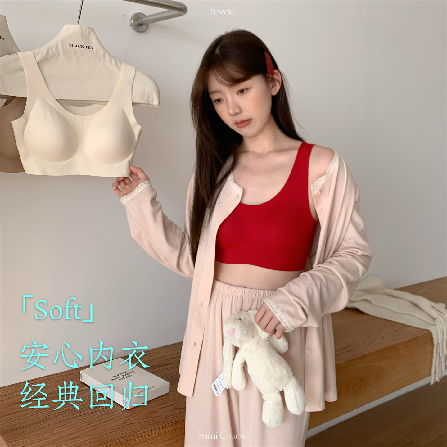 安心隐形无痕美背粉底液内衣女聚拢吊带背心式文胸罩外穿运动抹胸
