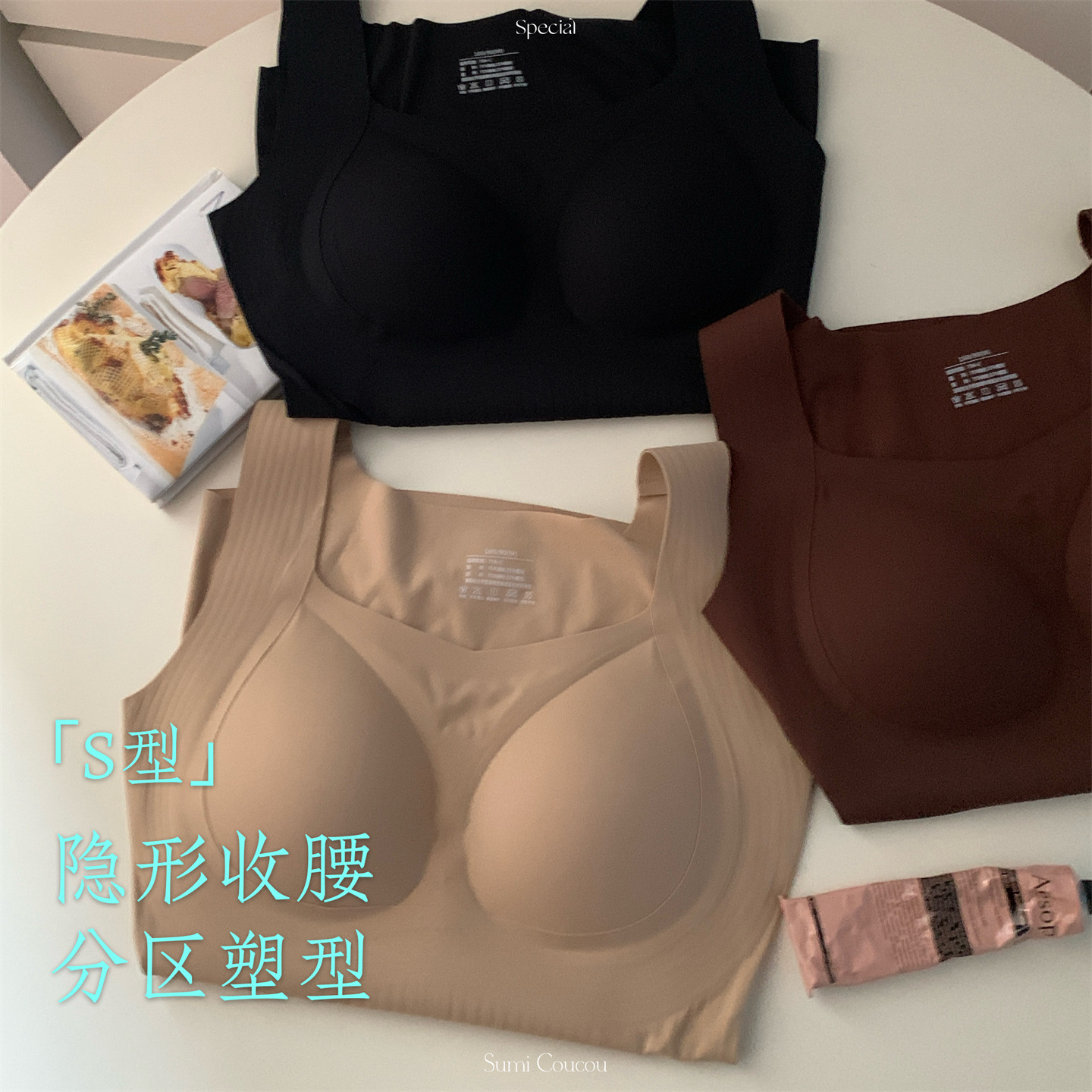 分区塑形磨毛保暖内搭背心女新款秋冬u领打底吊带无袖上衣收腹