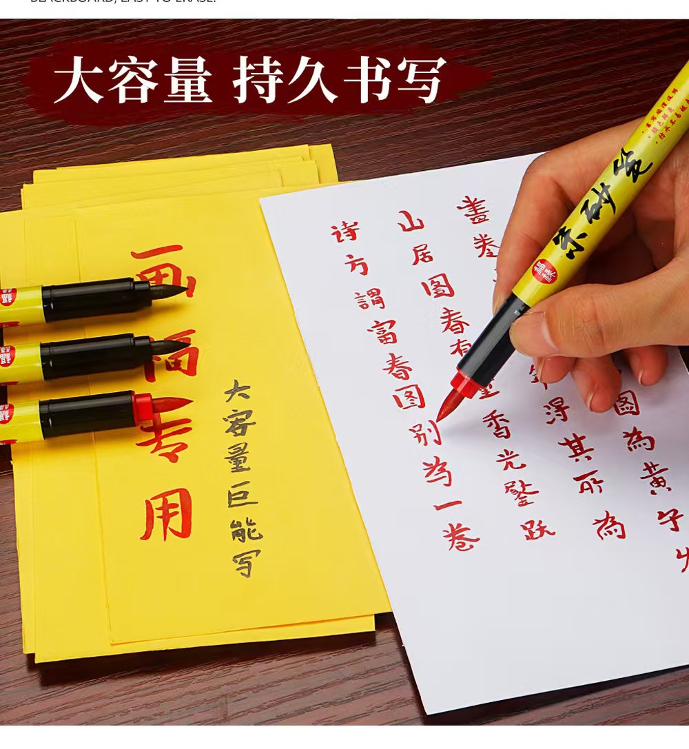符画朱砂笔大容量防水练字笔红色抄经笔写喜字书法描红软头毛笔