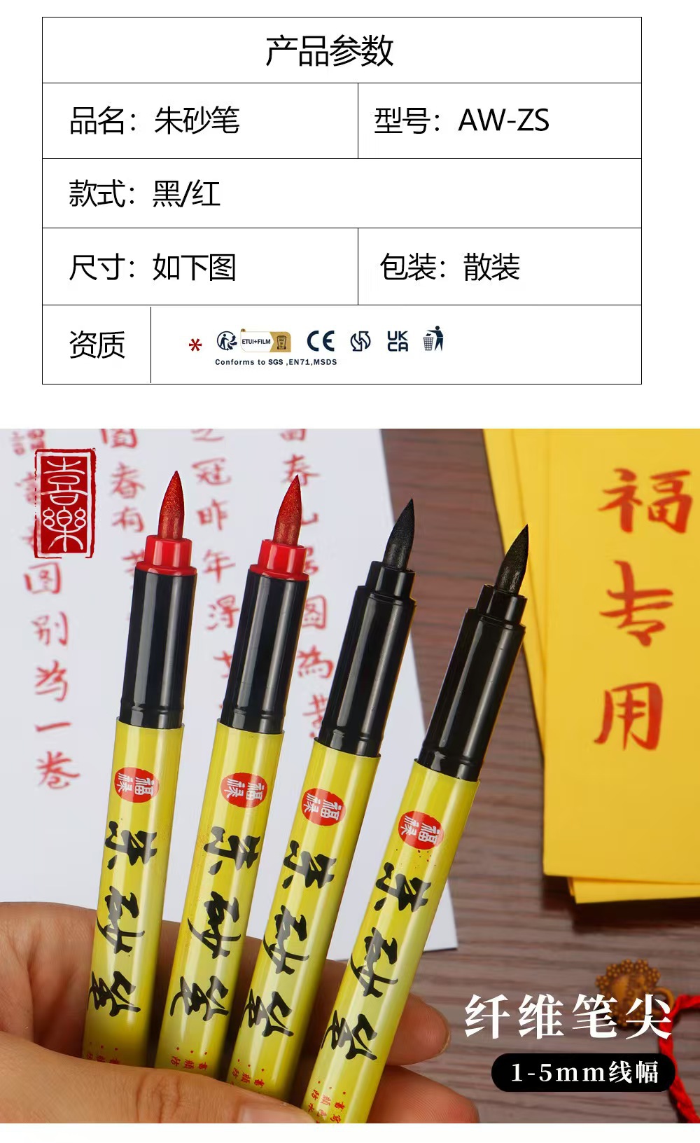 型号 朱砂笔-黑色,朱砂笔-红色