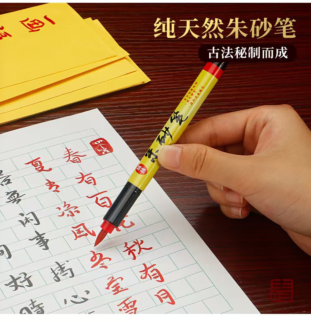 朱砂笔符画含有朱砂液练字书法抄经描红免蘸墨软头毛笔启蒙点睛笔