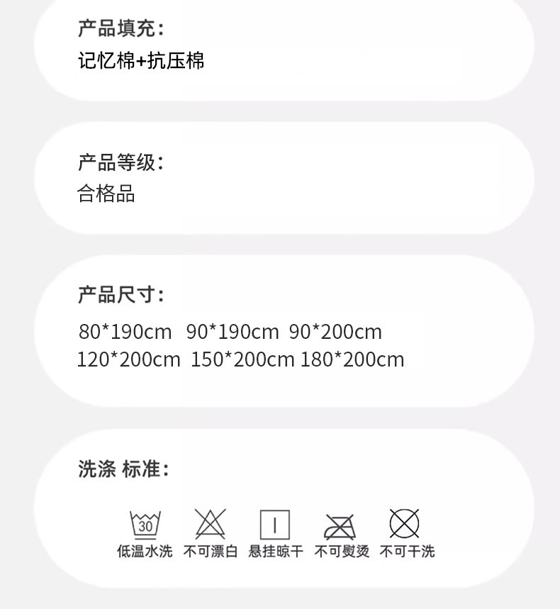 适用床尺寸 1.2m(4英尺)床,1.5m(5英尺)床,1.8m(6英尺)床,2.0m(6.6英尺)床,0.9m(2.9英尺)床
