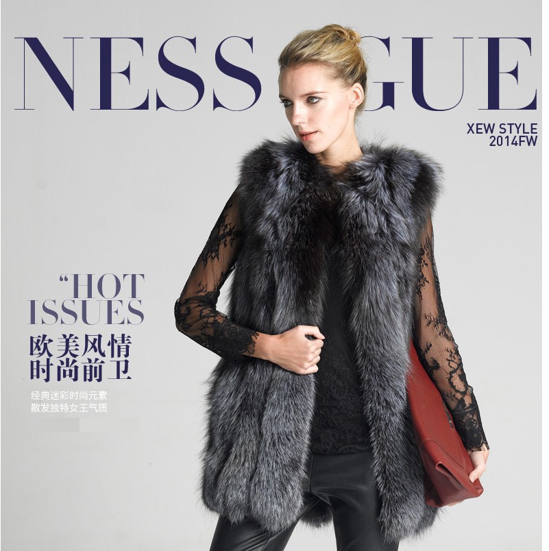 毛皮のコート2018の新しいキツネの毛の女性の馬甲の中で長い毛皮の女性の銀狐の欧米は毛皮の女性をまねます。