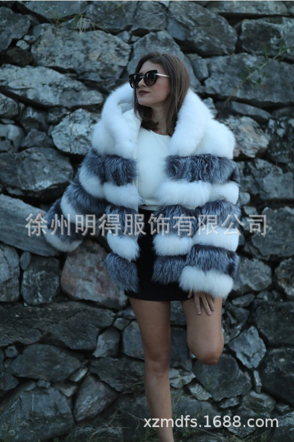 2022新型の毛皮は欧米の毛皮の婦人服のコートをまねてキツネの毛の横をまねて人工毛皮の現物をつなぎ合わせます。