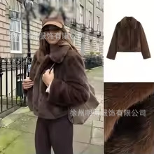 仿皮草外套2025秋冬时尚女新款短款洋气毛毛外套小连帽白底大衣