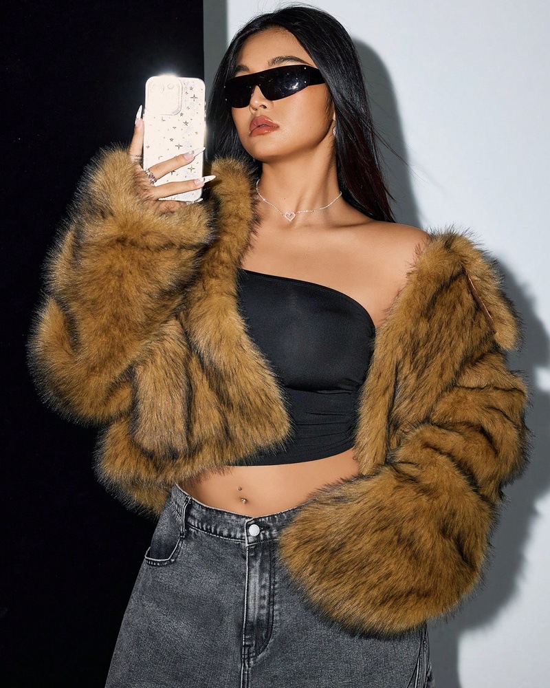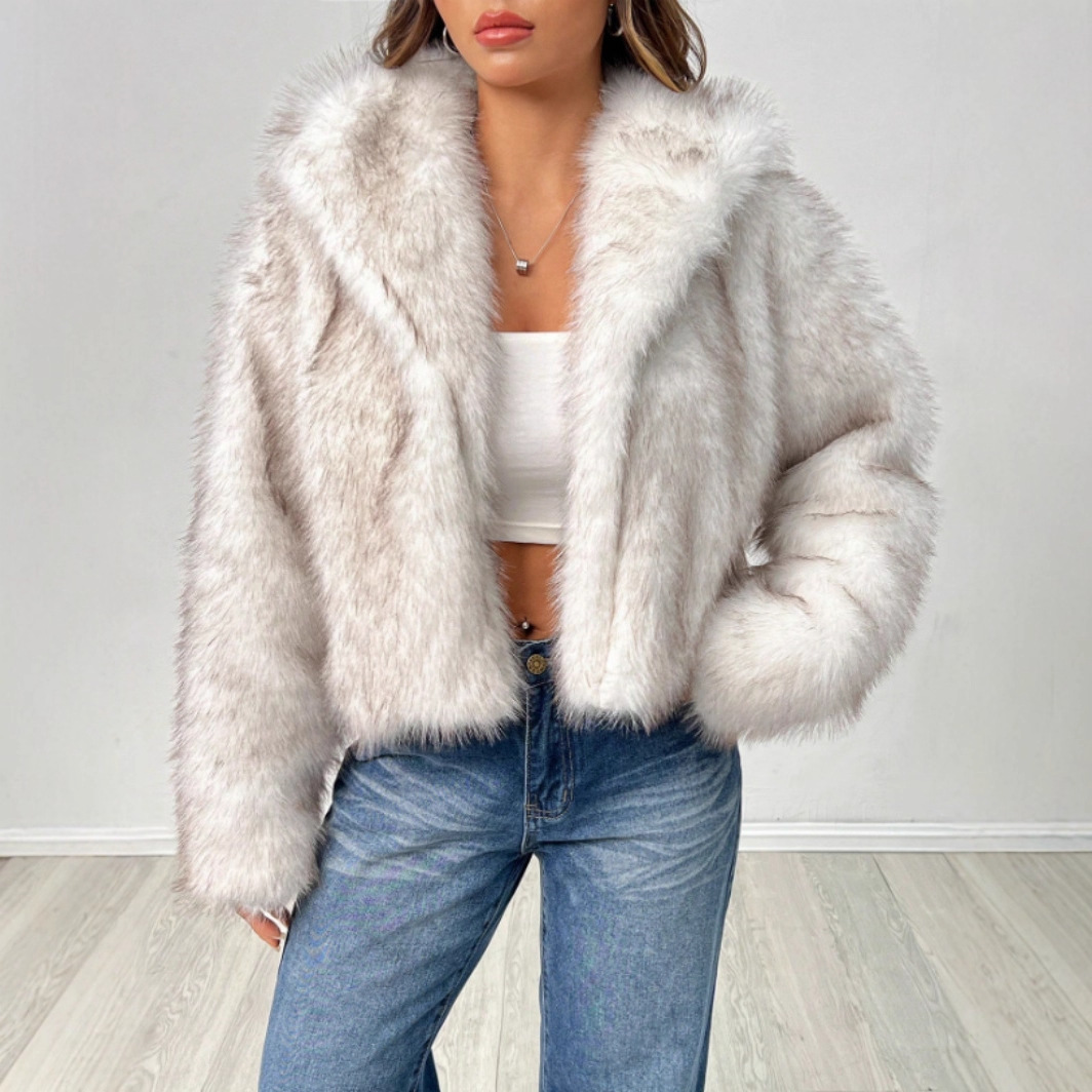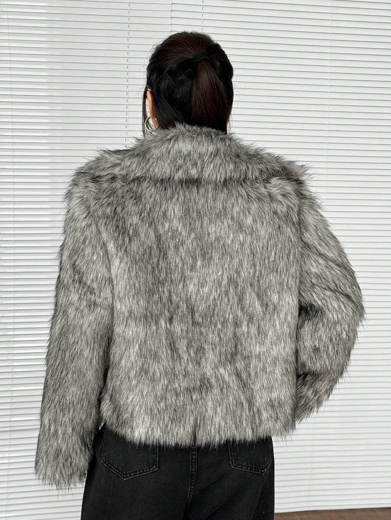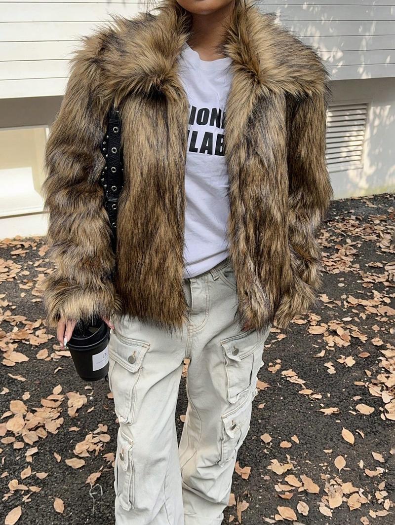 2025新款欧美跨境女装短款仿皮草外套时髦大翻领长袖保暖大衣