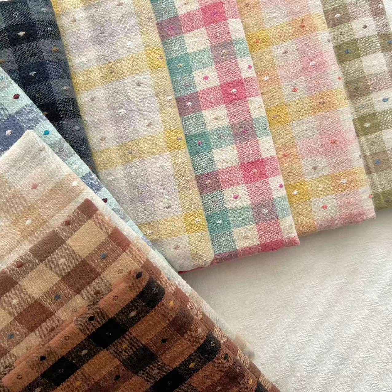 日韩色提花 水洗纯棉先染布 手工色织布 娃娃衣格子/