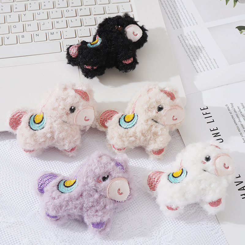 可爱卡通毛绒彩虹马公仔胸针卷毛小马秋冬头饰帽子包包装饰辅料