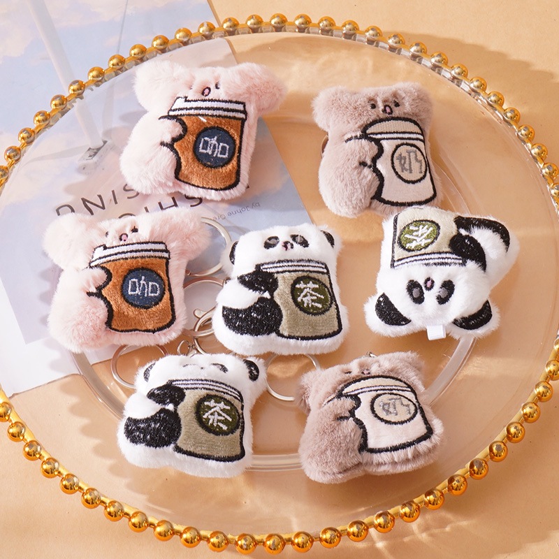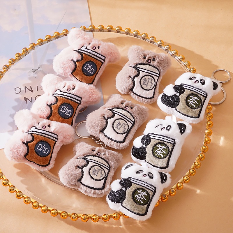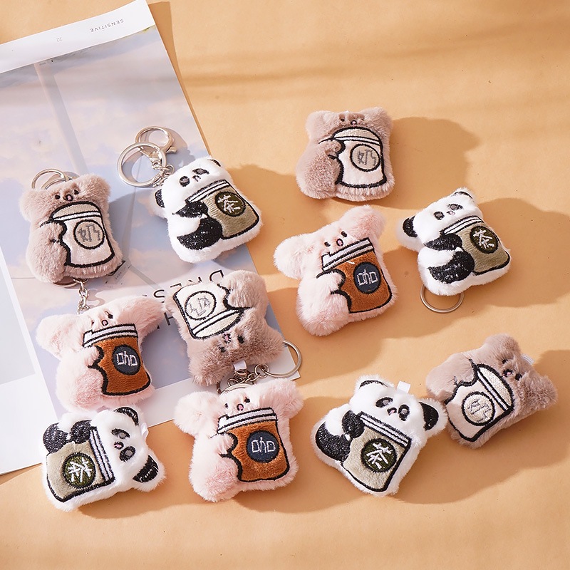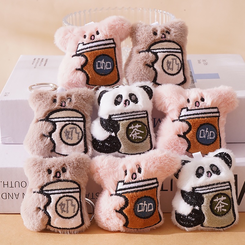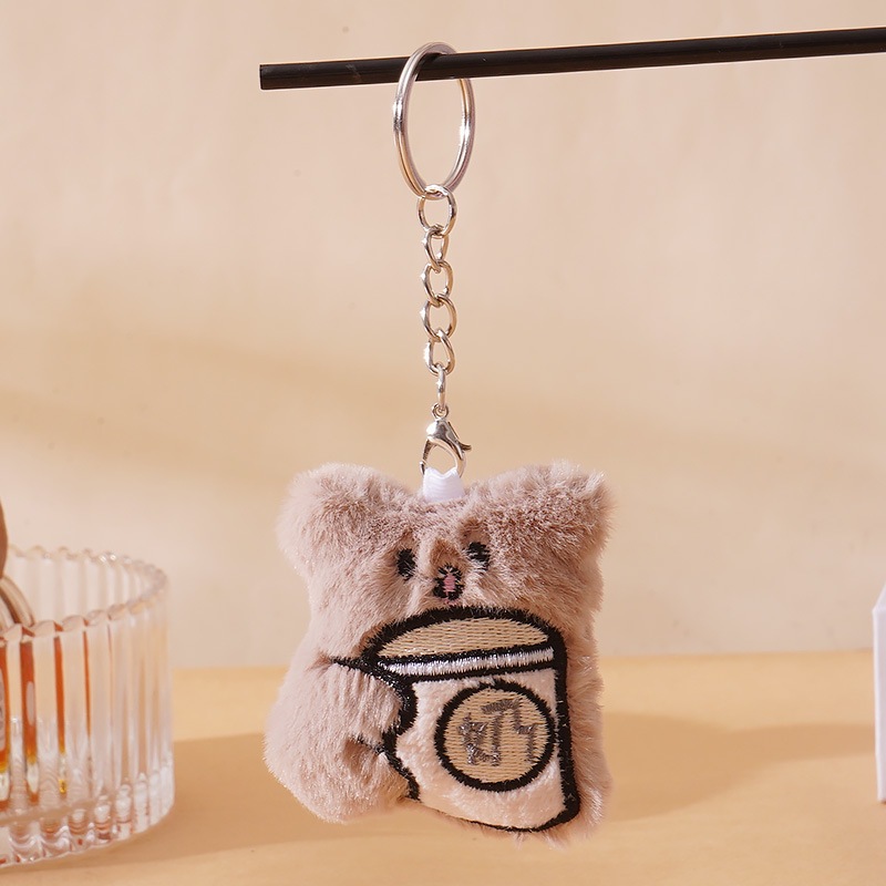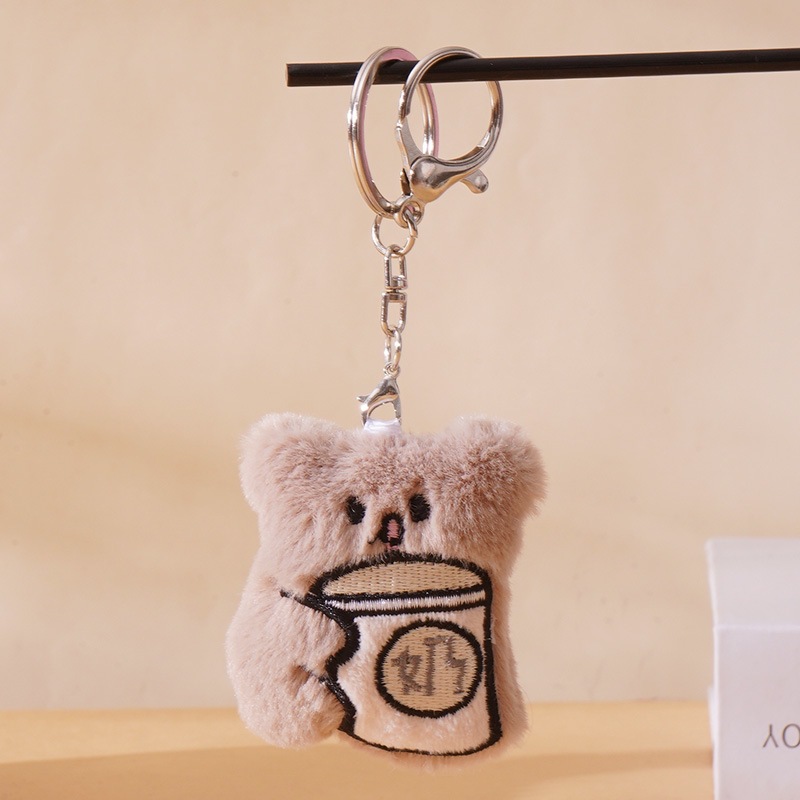毛绒奶茶小熊钥匙扣可爱公仔玩偶挂件挂链学生包包挂饰礼物配饰