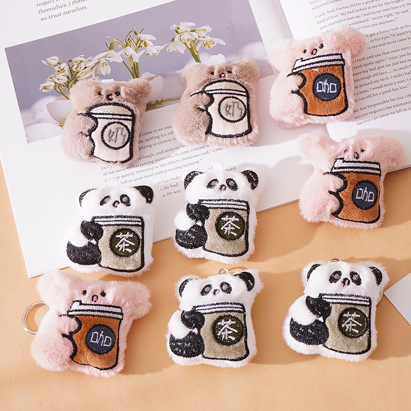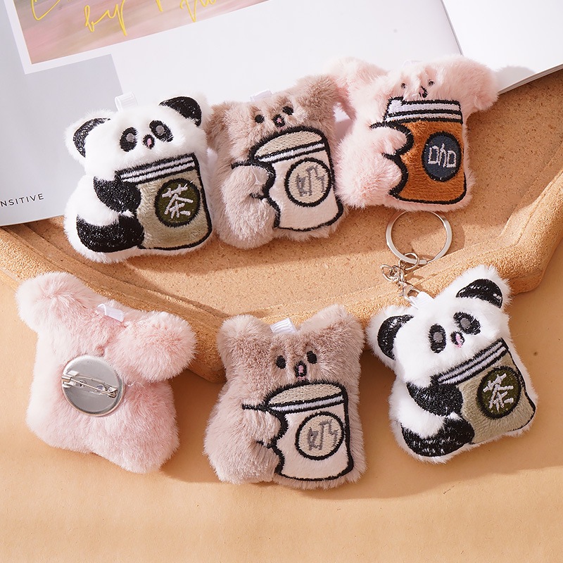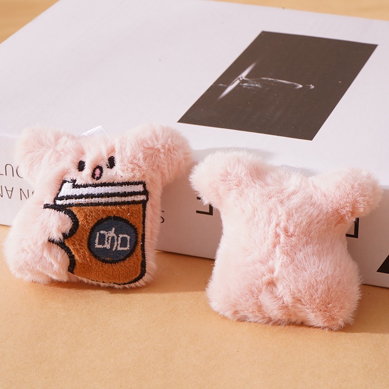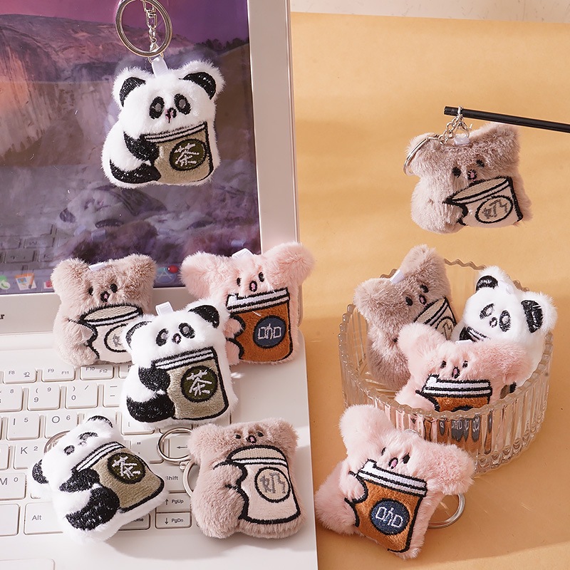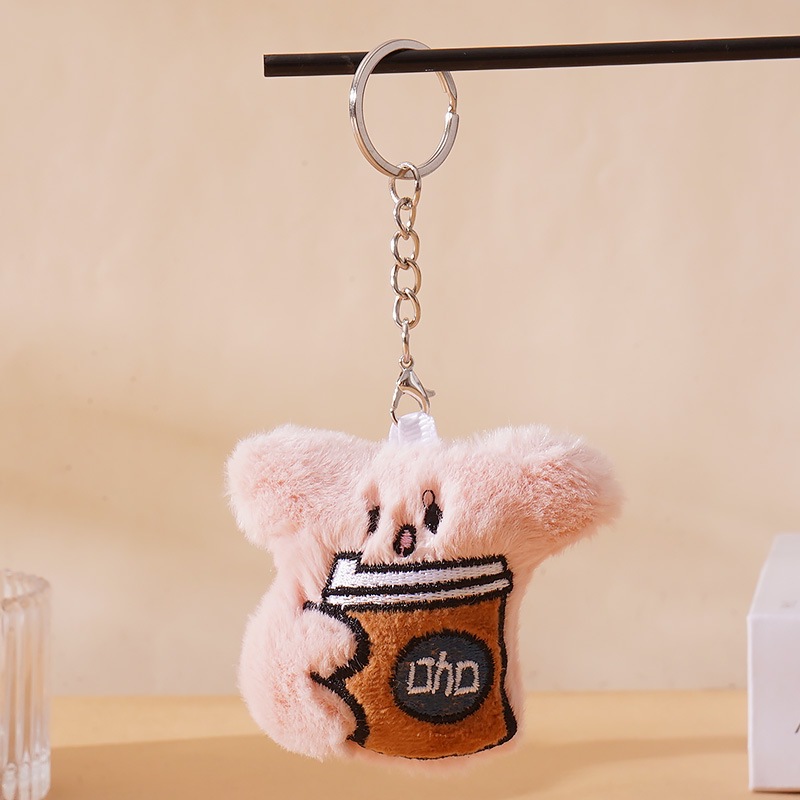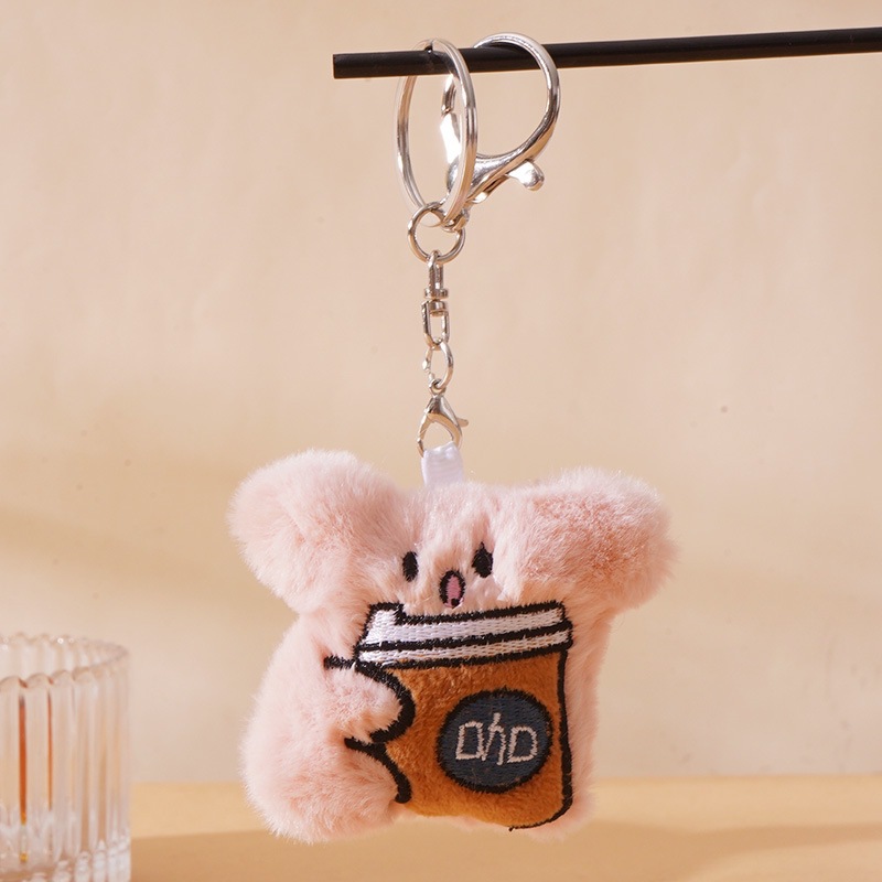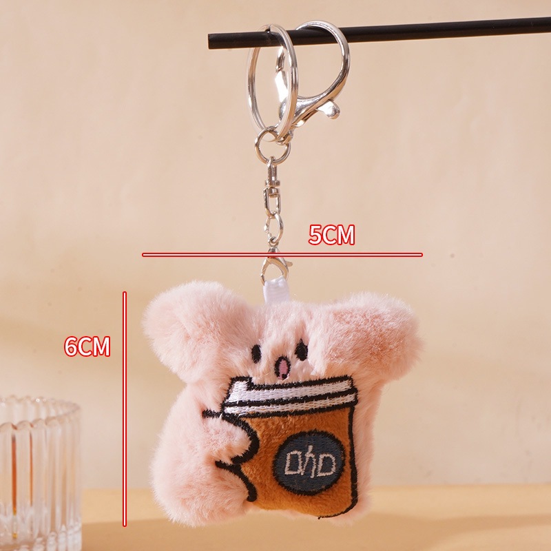 毛绒奶茶小熊钥匙扣可爱公仔玩偶挂件挂链学生包包挂饰礼物配饰