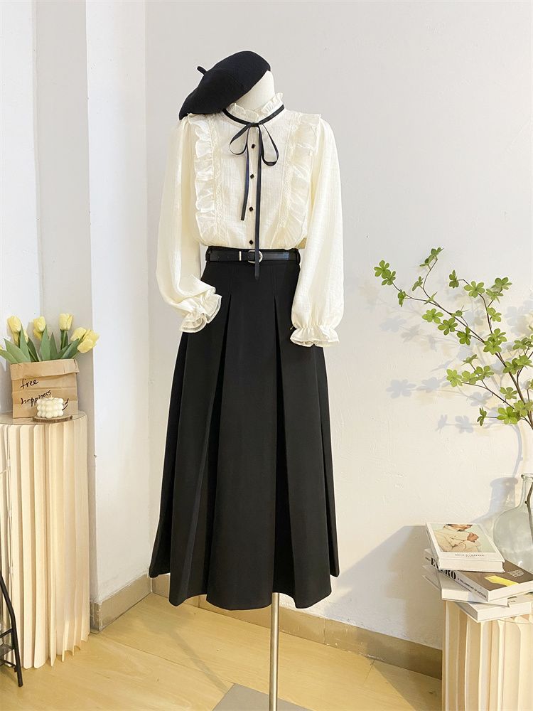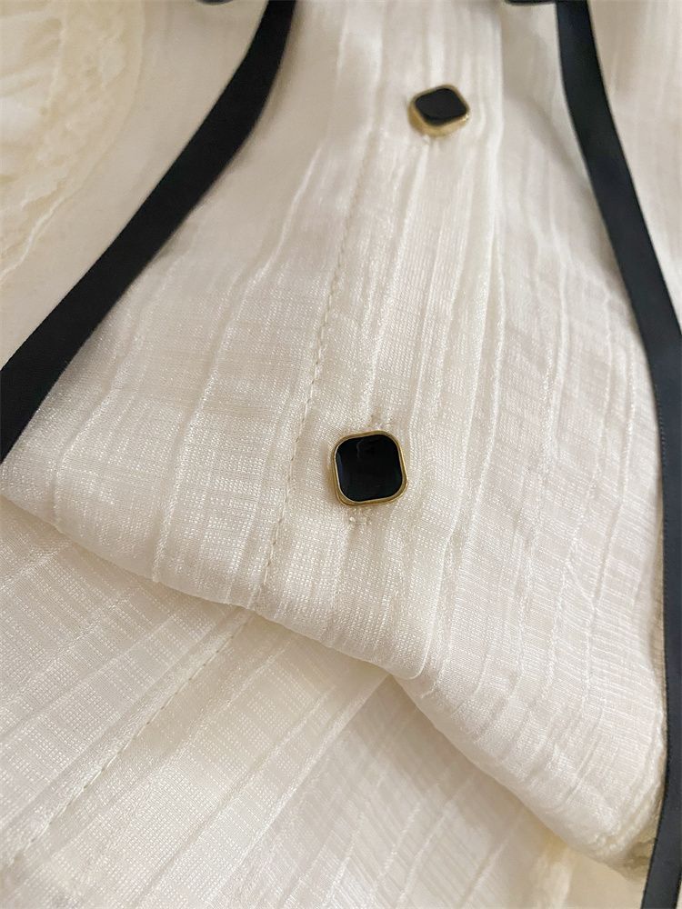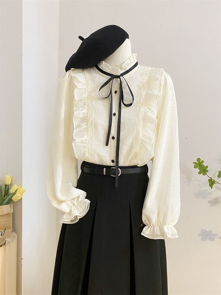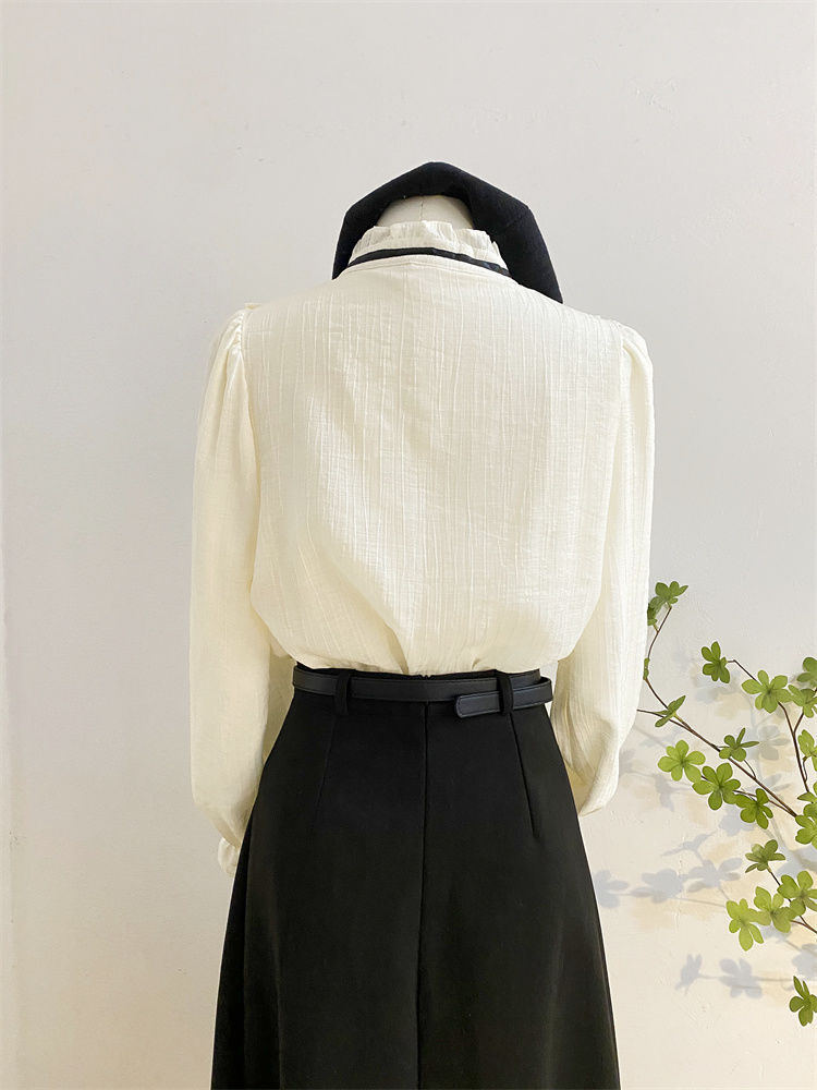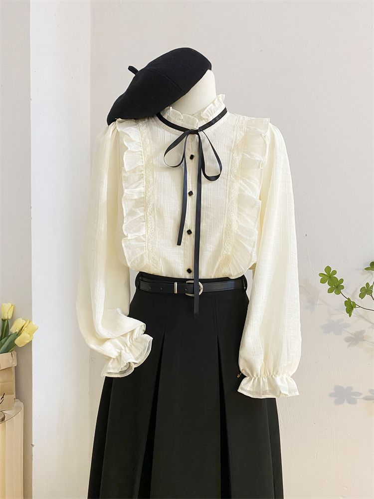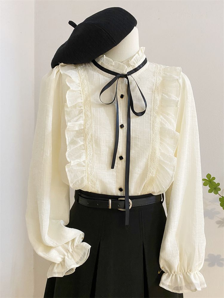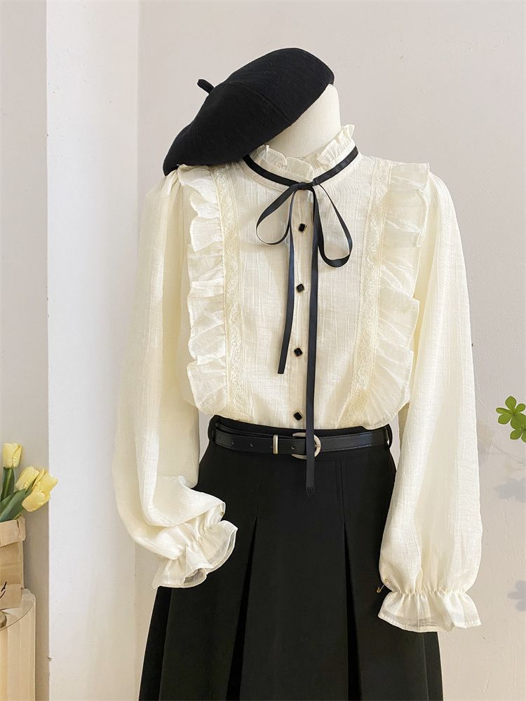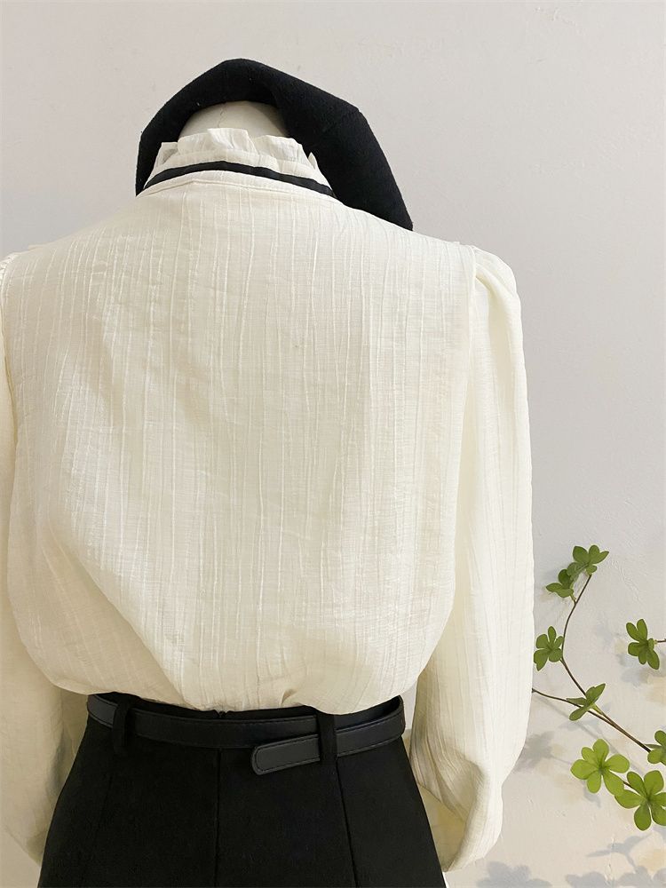 2025新款春秋季新款法式宫廷风木耳边雪纺上衣女别致衬衫优雅气质