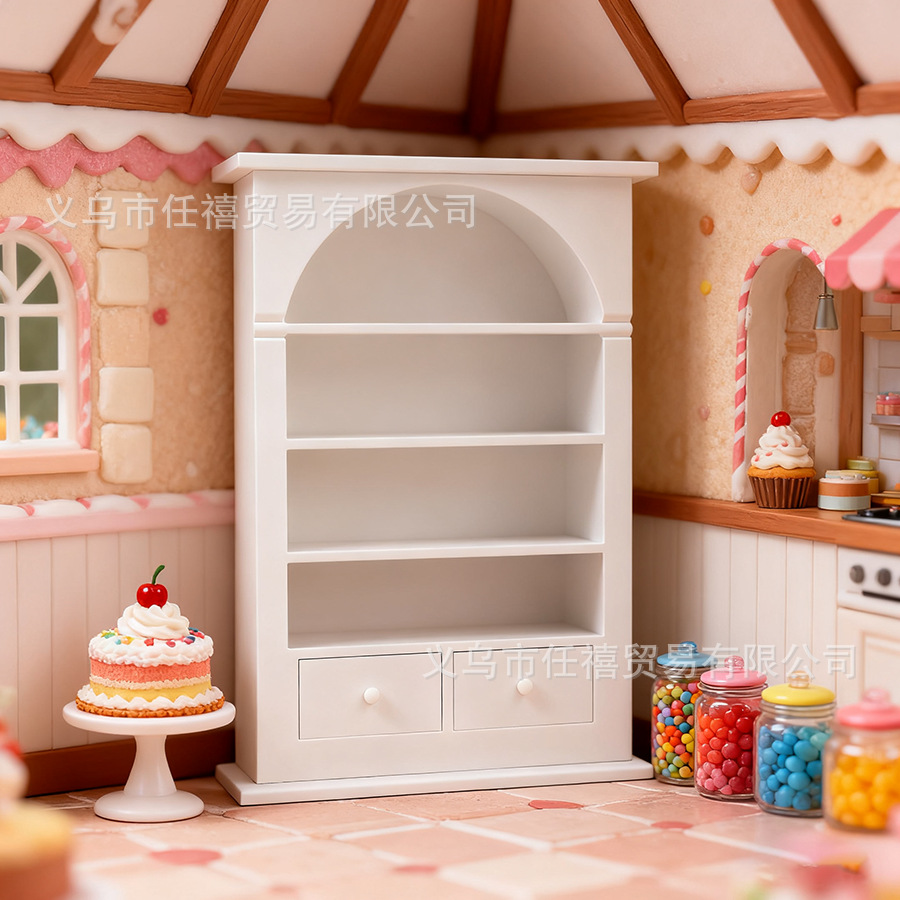 微缩场景置物柜拱形书柜食玩仿真沙盘模型搭配各类娃娃屋卧室书房