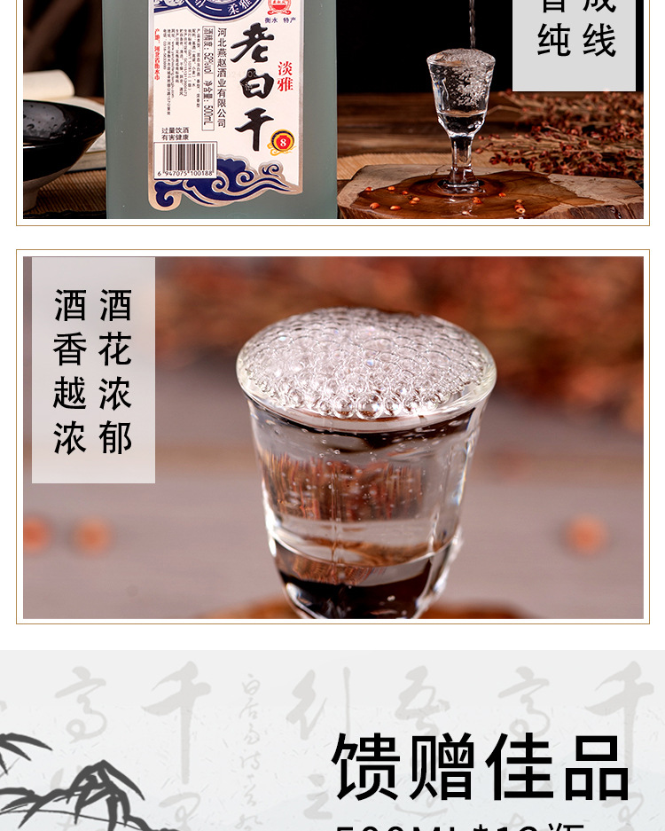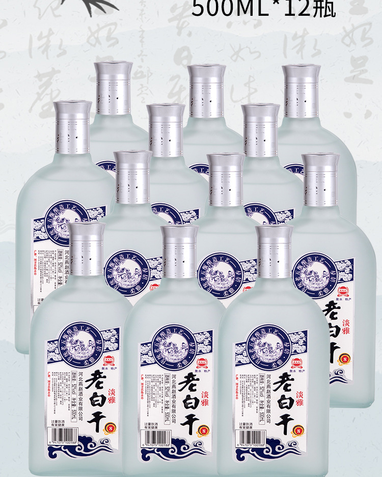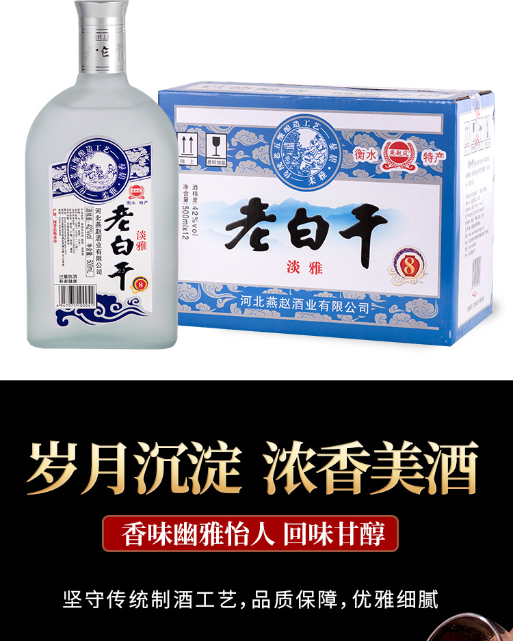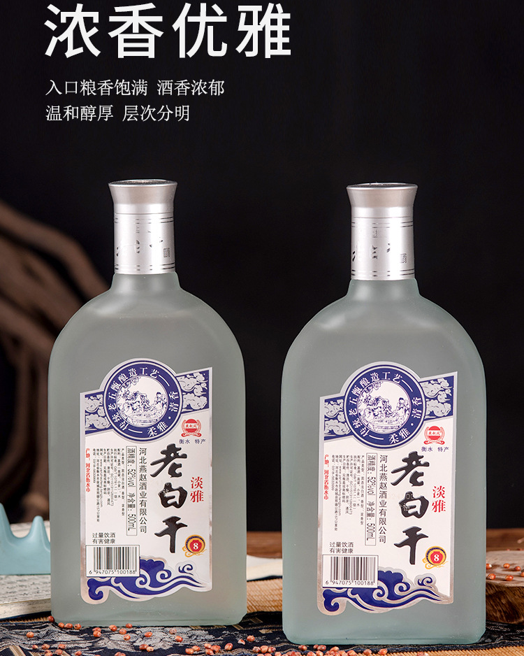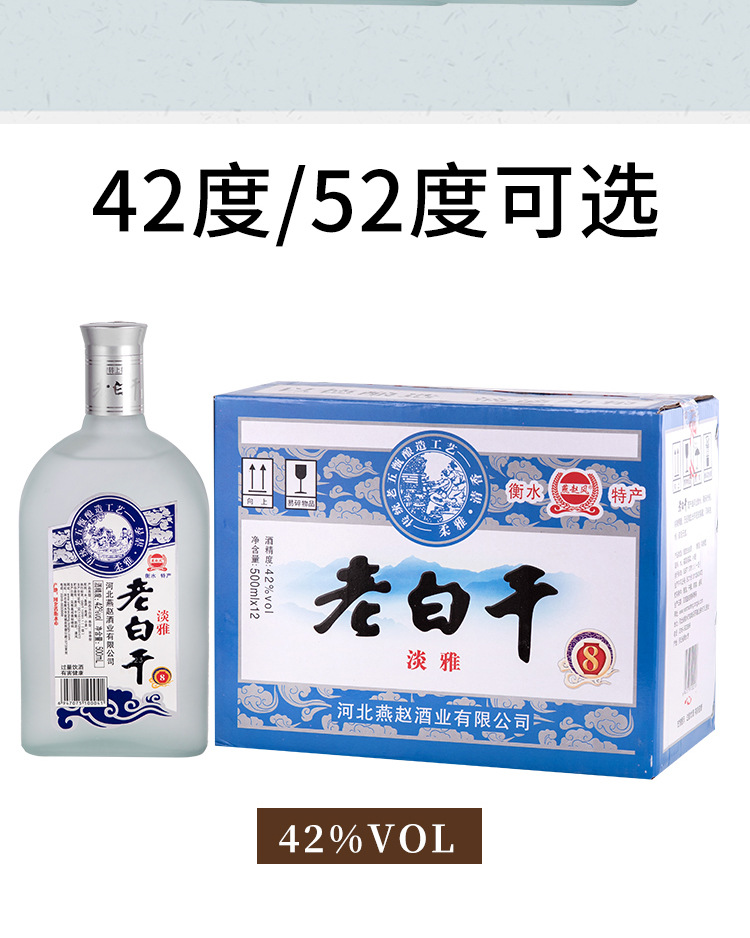 老白干衡水特产42度浓香型白酒52度淡雅磨砂扁瓶500ml*1瓶粮食酒
